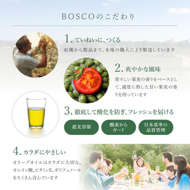 【ボスコ エキストラバージンオリーブオイルの商品詳細】