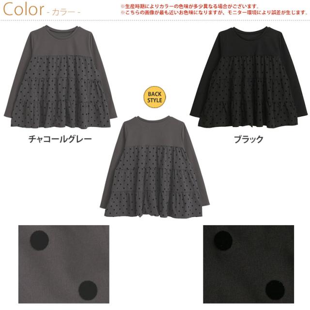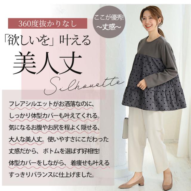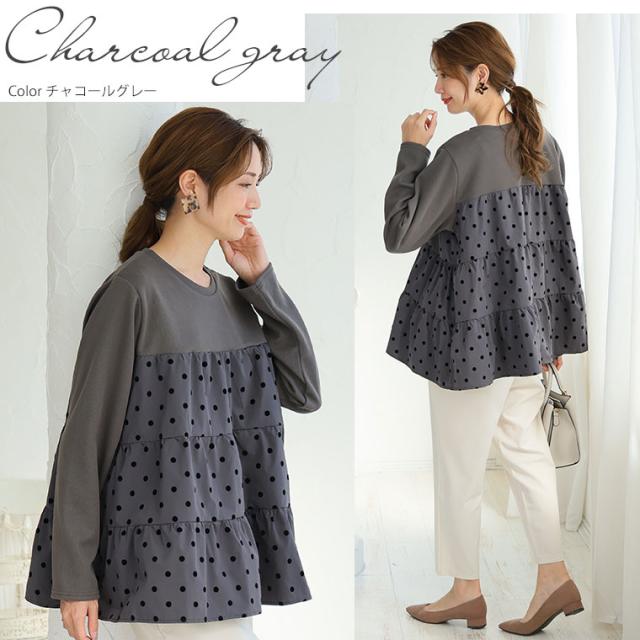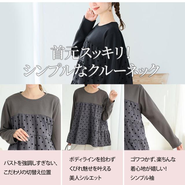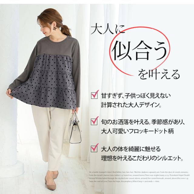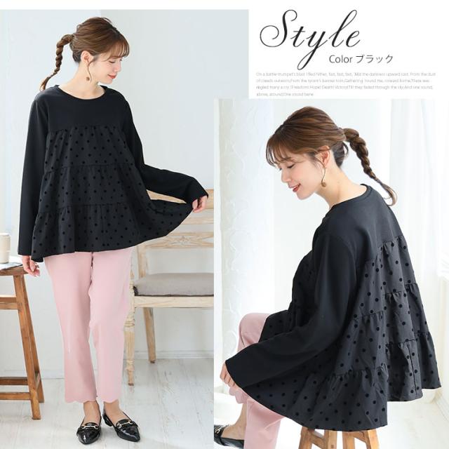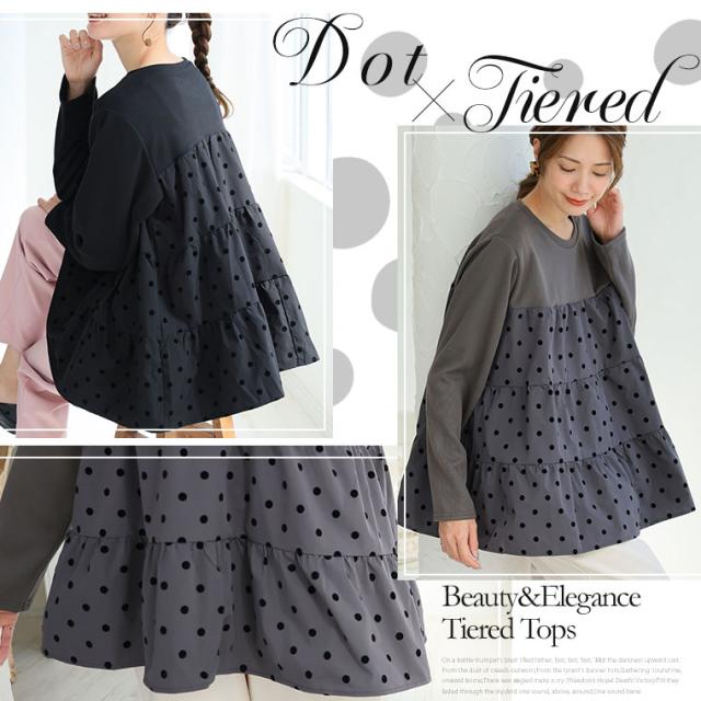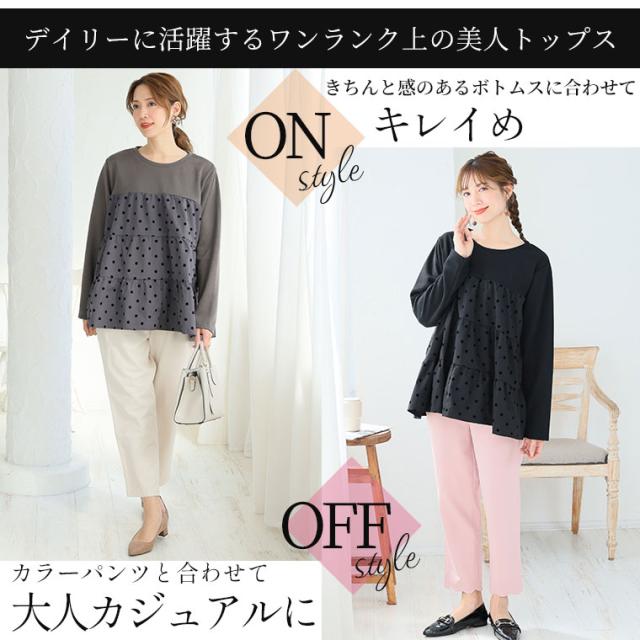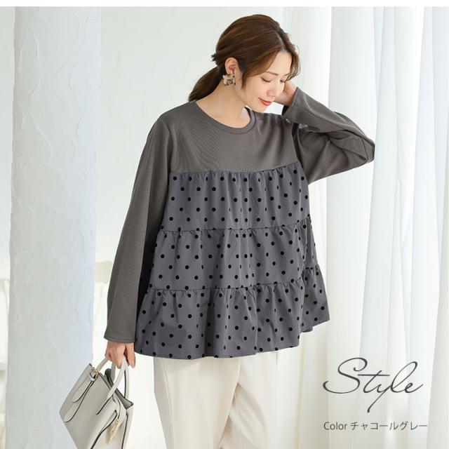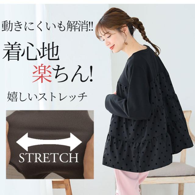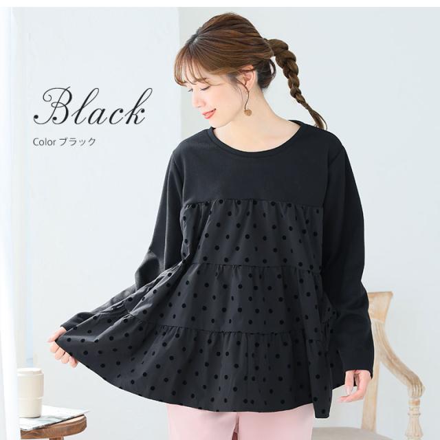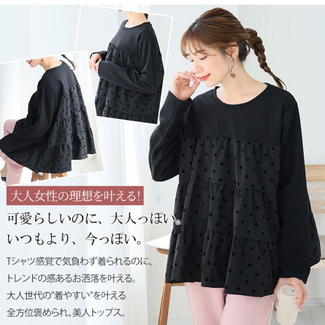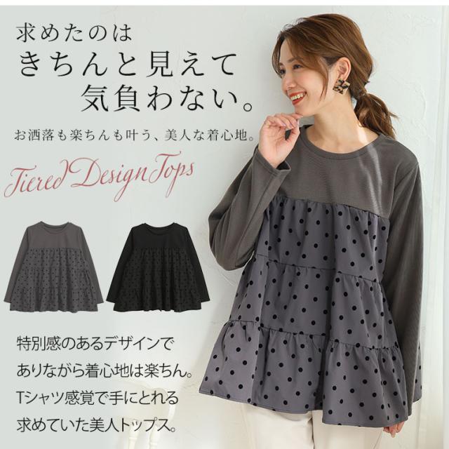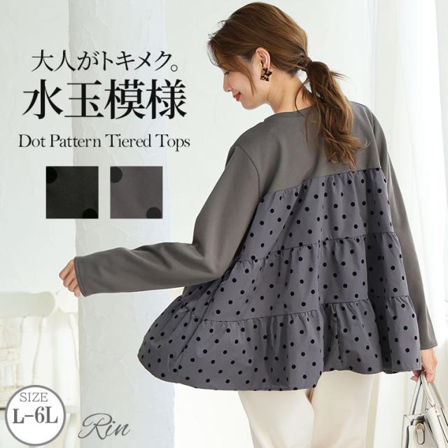 【クーポン利用で40%オフ】 新作 大きいサイズ レディース トップス | Rin ストレッチ起毛 × フロッキードット ティアード トップス [861481] LL 3L 4L 5L 6L
