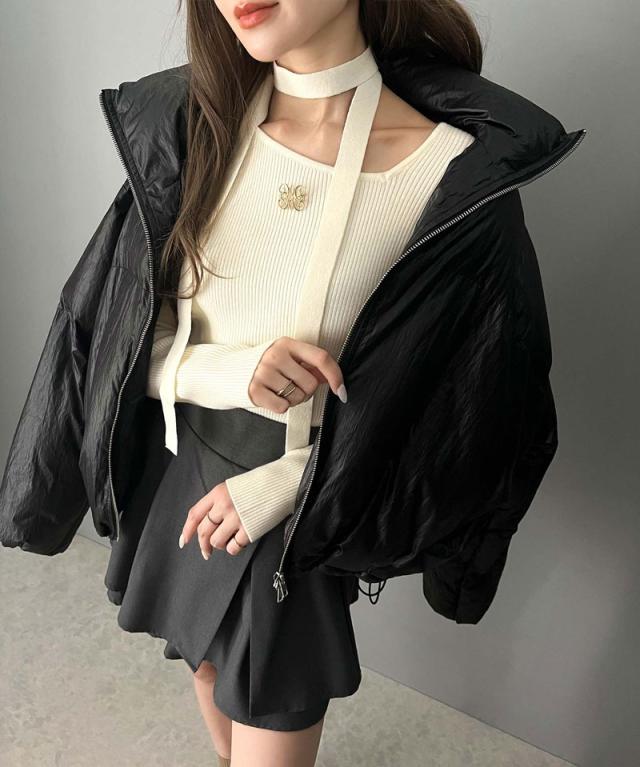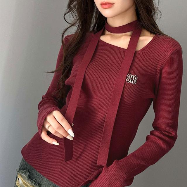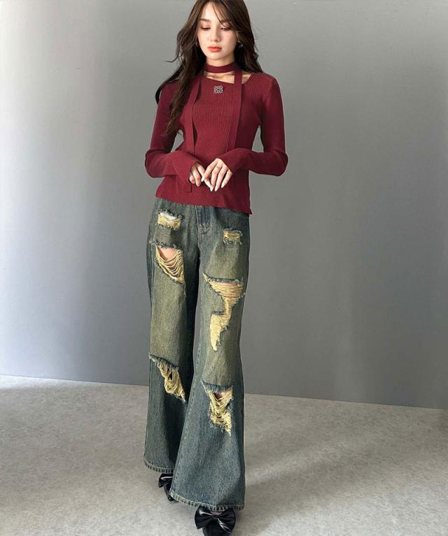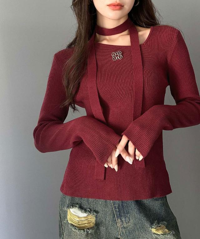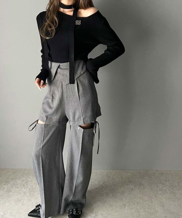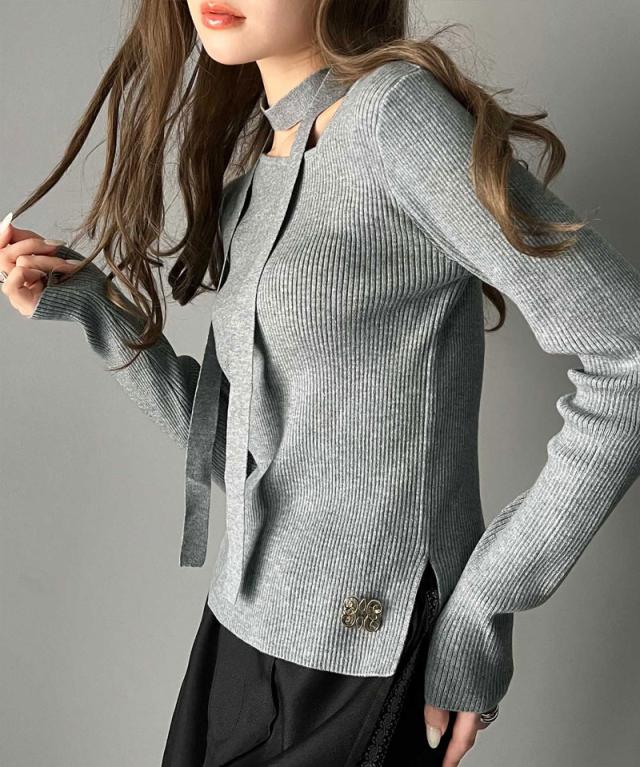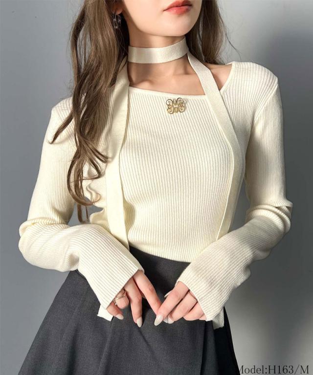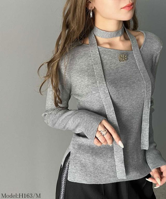クラシカルエルフ秋新作 mily bilet トップス ニット レディース ブローチ付き アシンメトリー オフショル ワンショル チョーカー マルチウェイ サイドスリット コンパクト カジュアル セーター 大きいサイズ 2024aw mi1029085