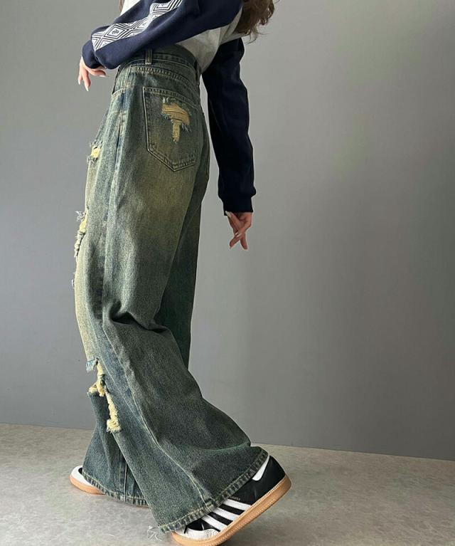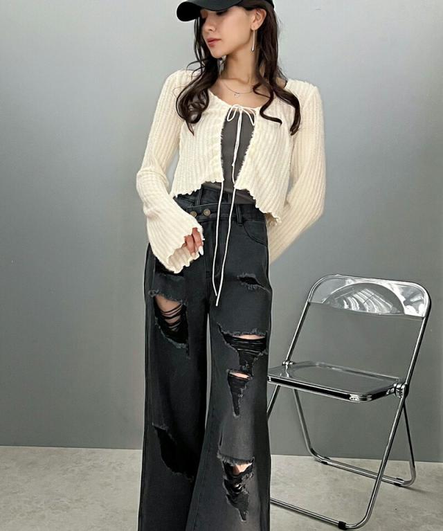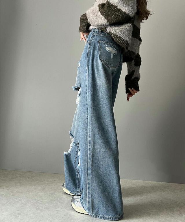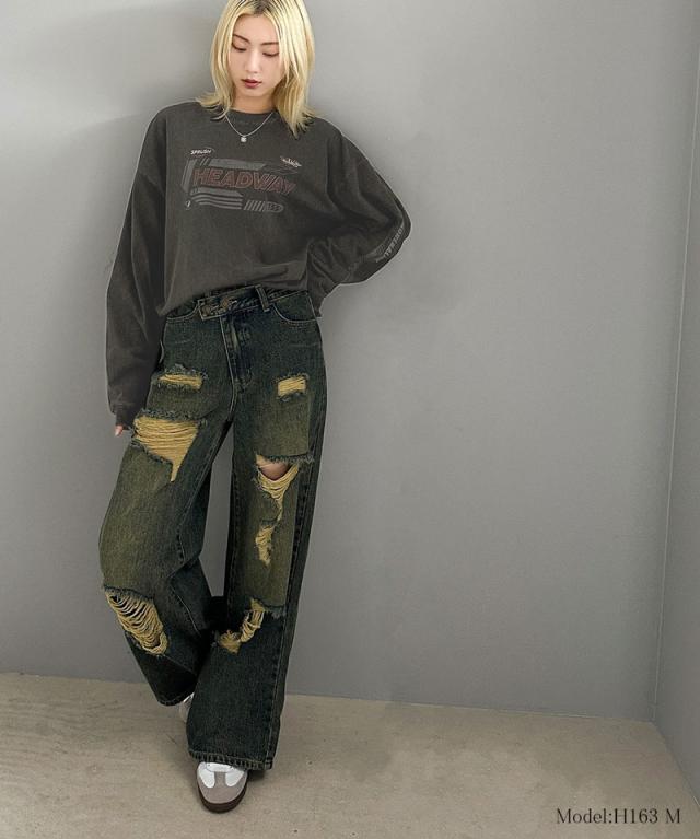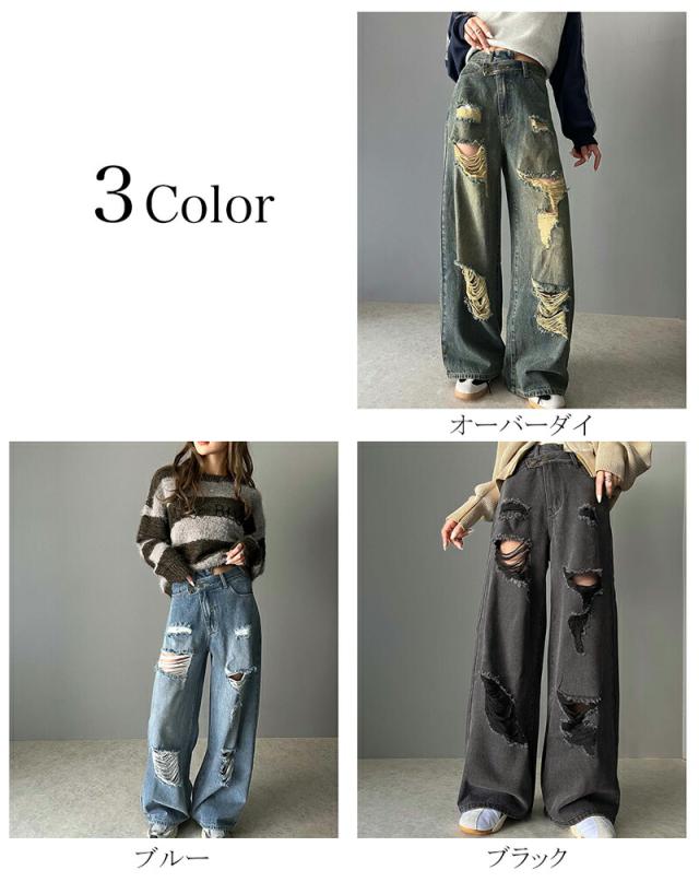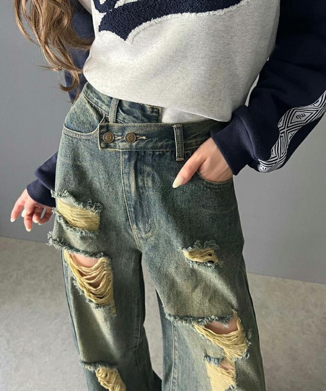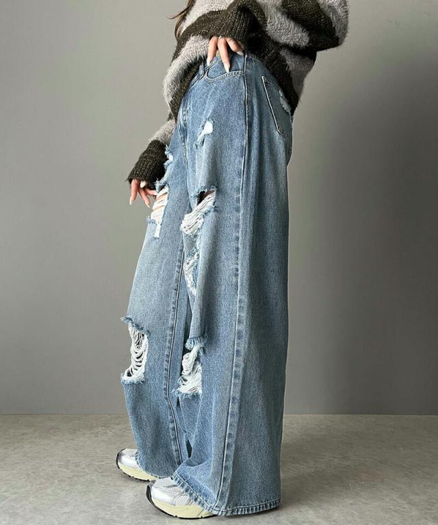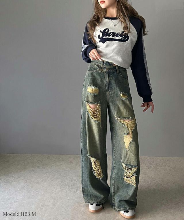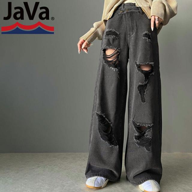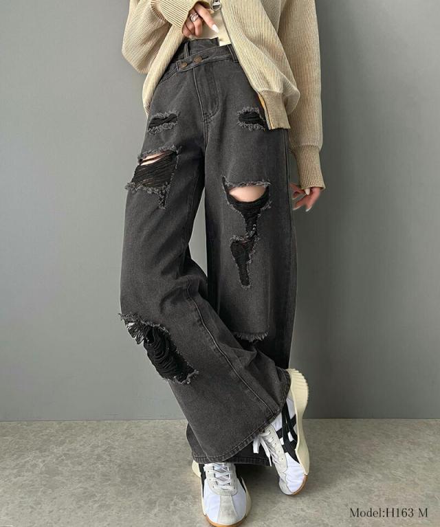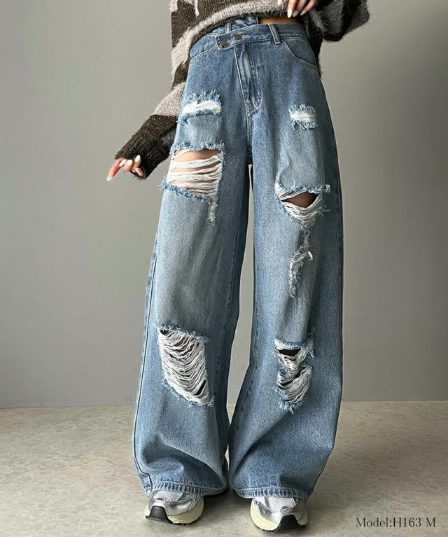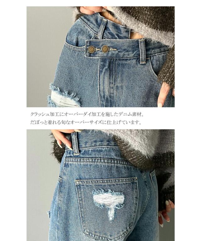 ★《Javaジャバコラボ》主役を飾る1本。アシメトリーウエストデザインクラッシュ加工ダメージワイドデニムパンツ★