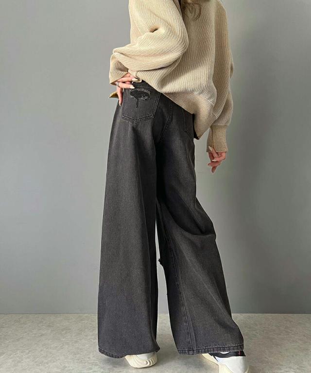 《メンズもレディースも着用できるワイドシルエットデニムパンツ。》