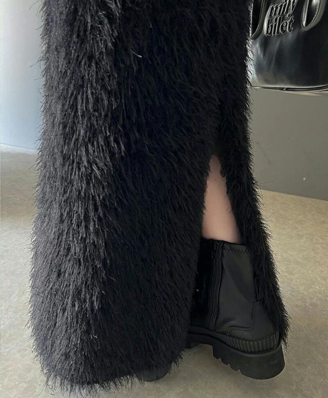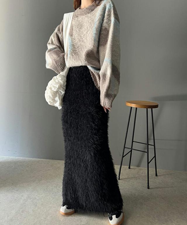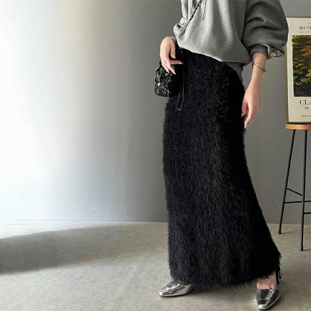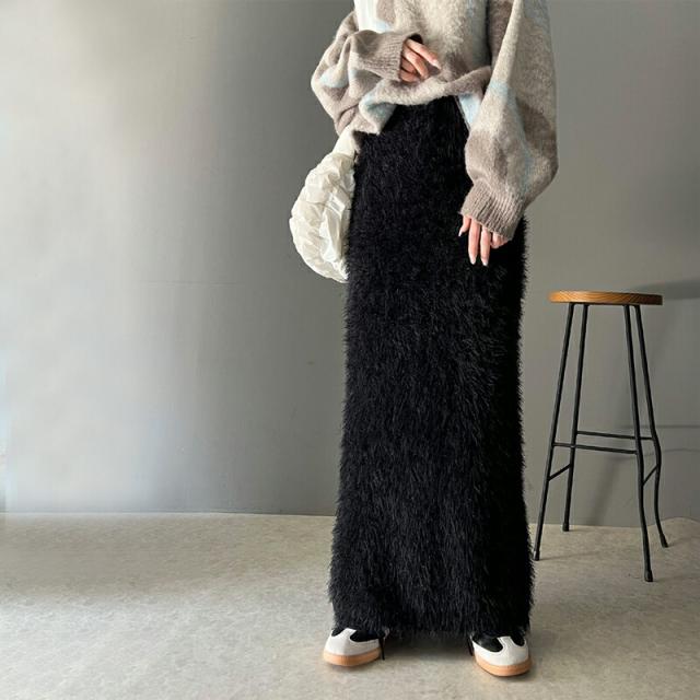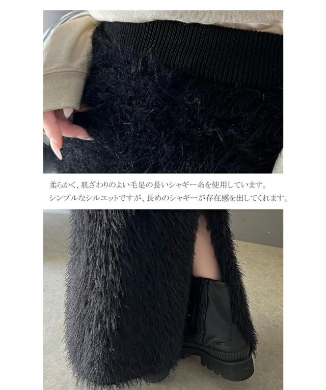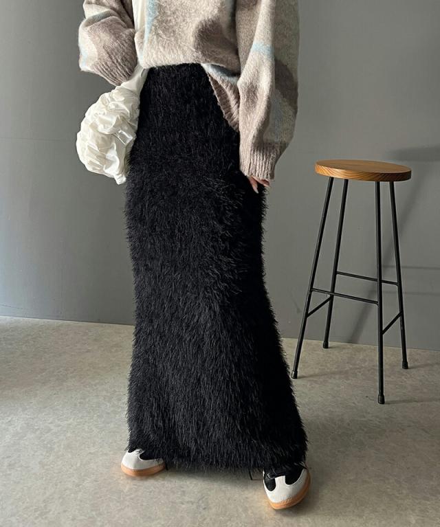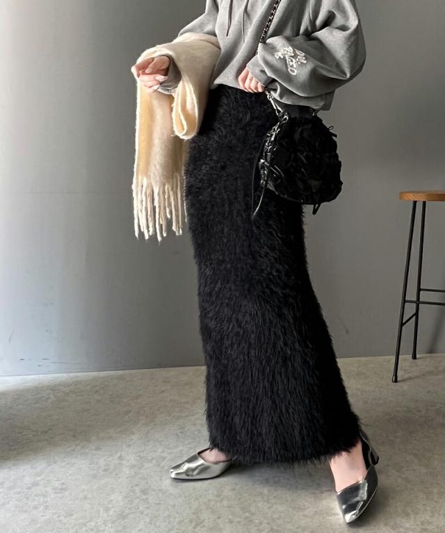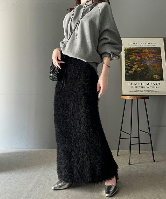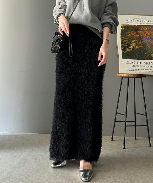 クラシカルエルフ秋新作 ボトムス スカート レディース 長め シャギー ニット タイト ロングスカート バック スリット ゆるっと オーバーサイズ スタイルアップ 着回し きれいめ 大きいサイズ 2024aw ce0940206