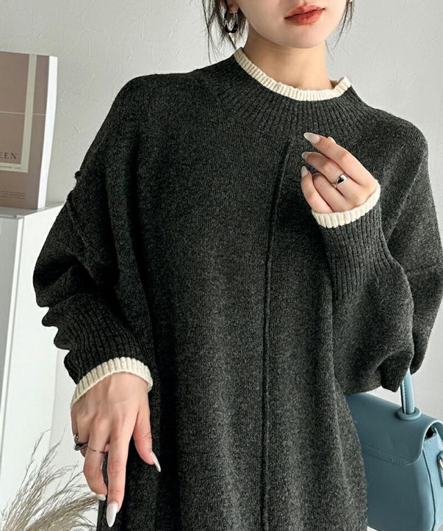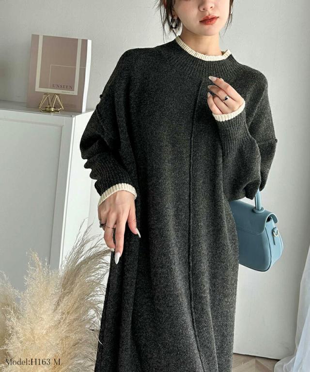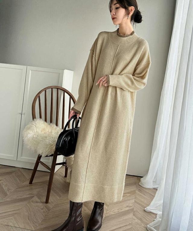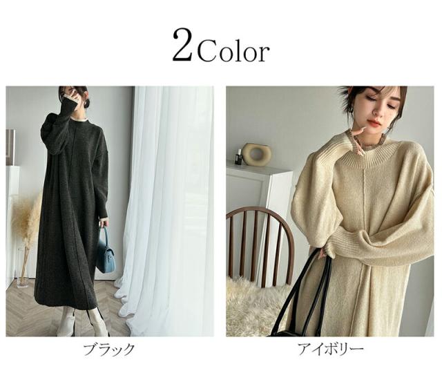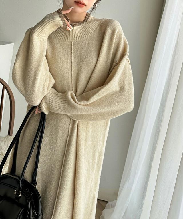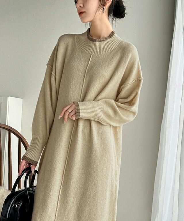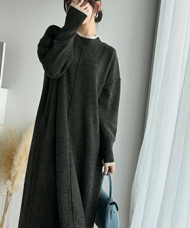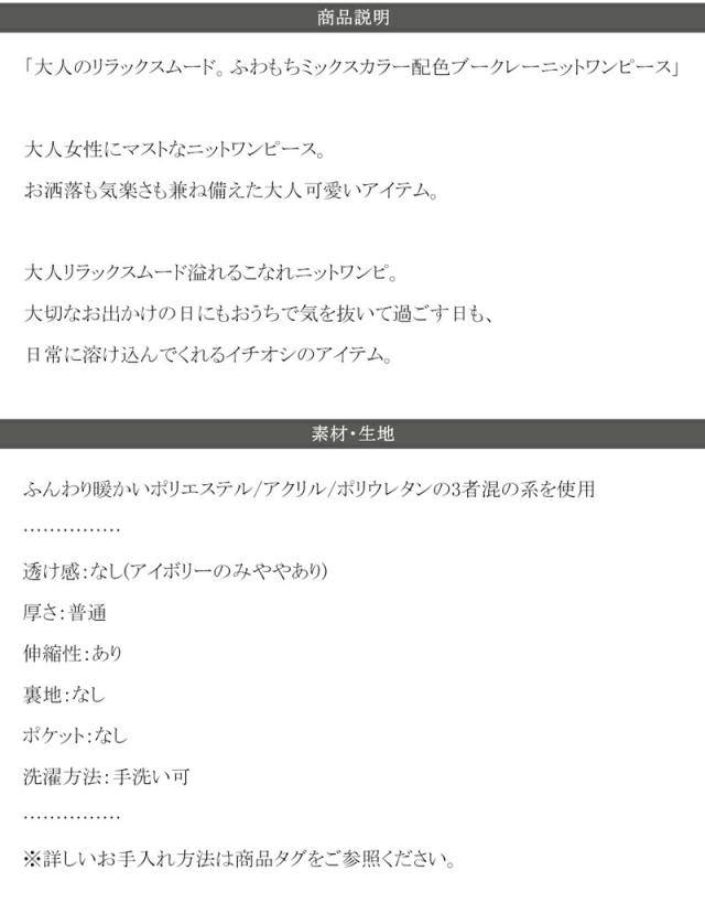 クラシカルエルフ冬新作 ワンピース レディース ふわもち ミックス カラー 配色 ブークレー ニットワンピ ゆるっと オーバーサイズ レイヤードコーデ ロング 丈 暖か スタイルアップ 大きいサイズ 体型カバー 2024aw ce1020169