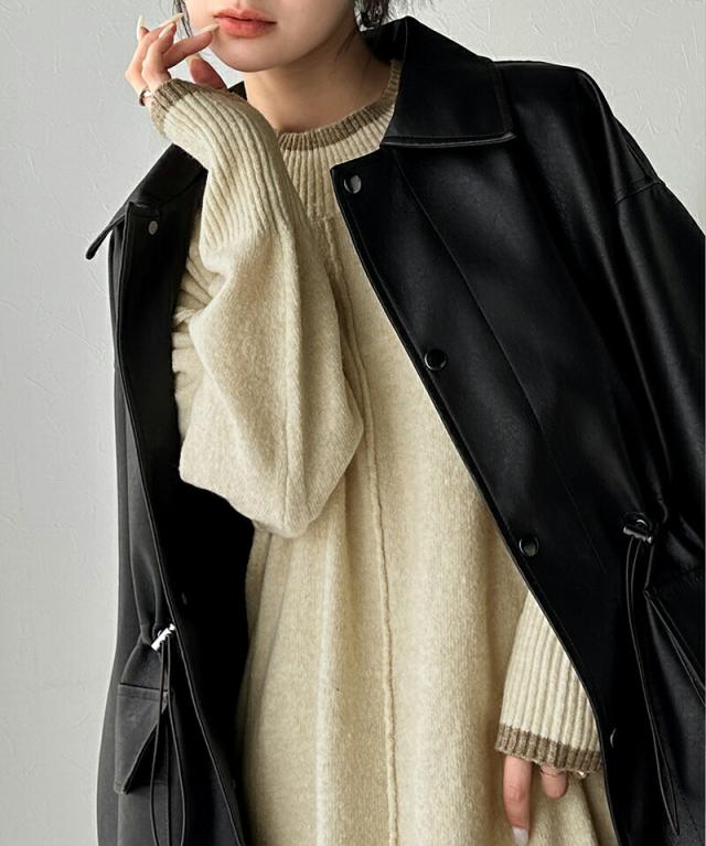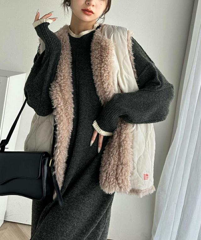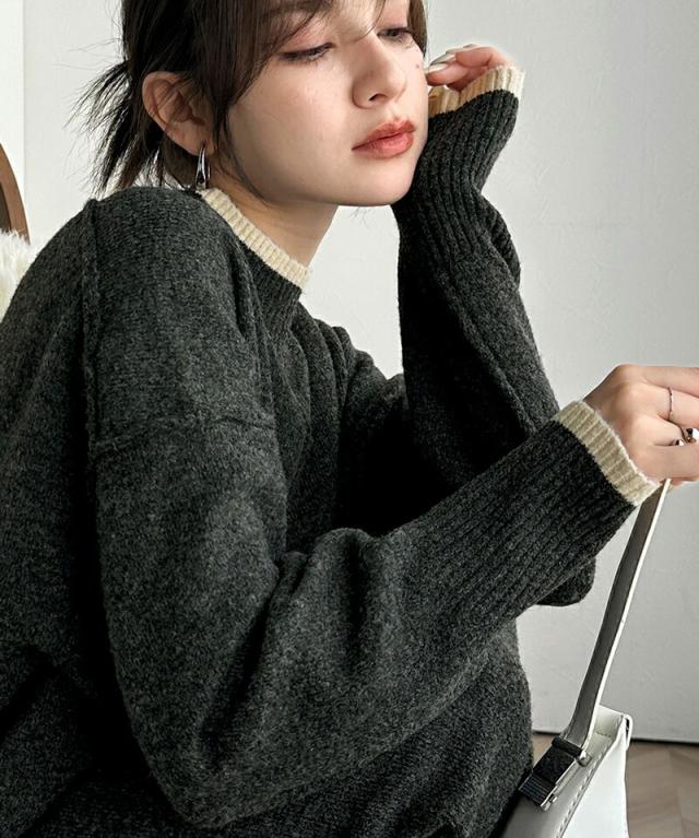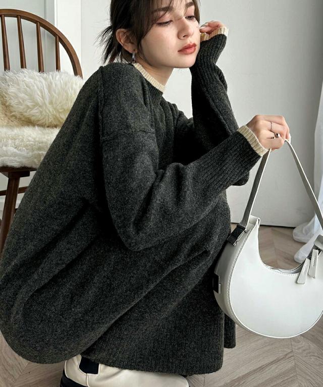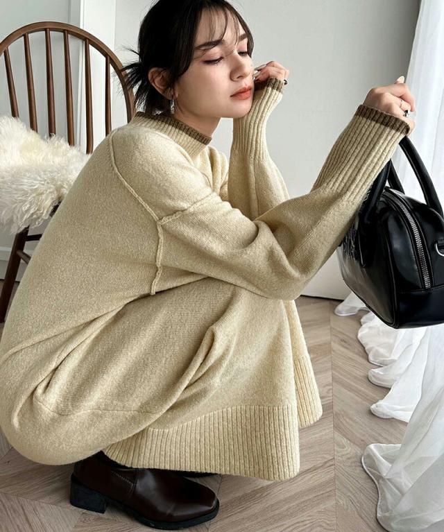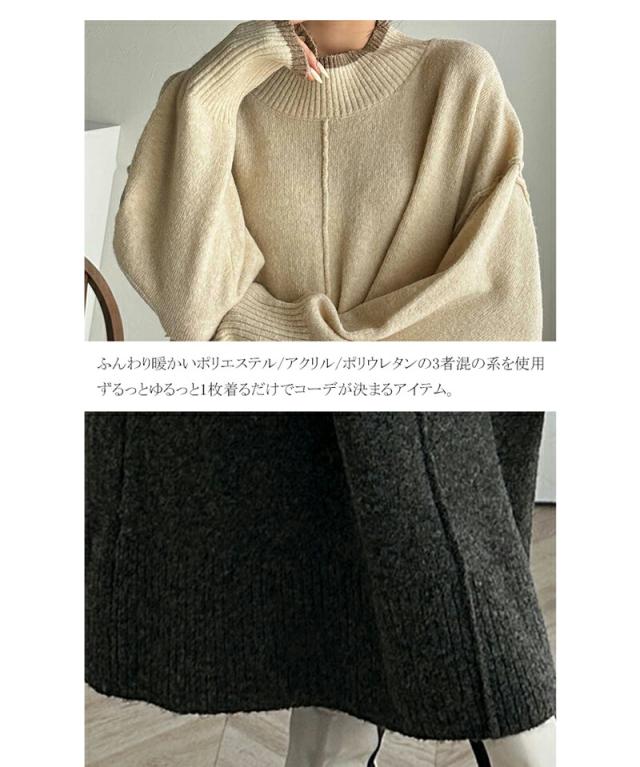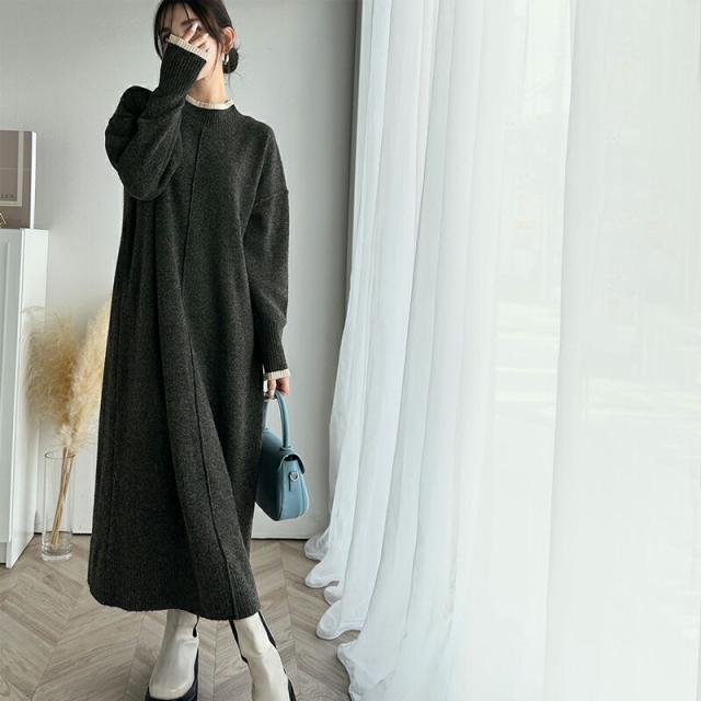 クラシカルエルフ冬新作 ワンピース レディース ふわもち ミックス カラー 配色 ブークレー ニットワンピ ゆるっと オーバーサイズ レイヤードコーデ ロング 丈 暖か スタイルアップ 大きいサイズ 体型カバー 2024aw ce1020169