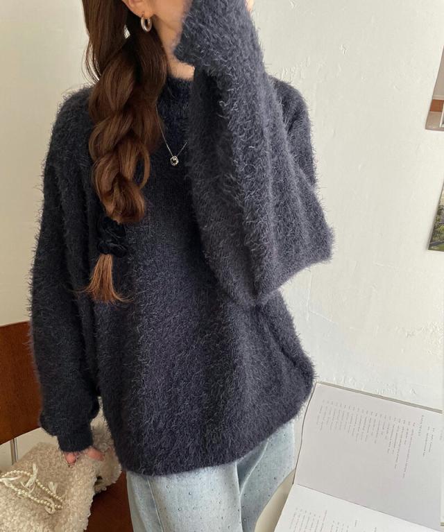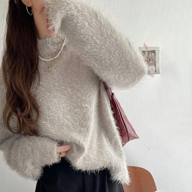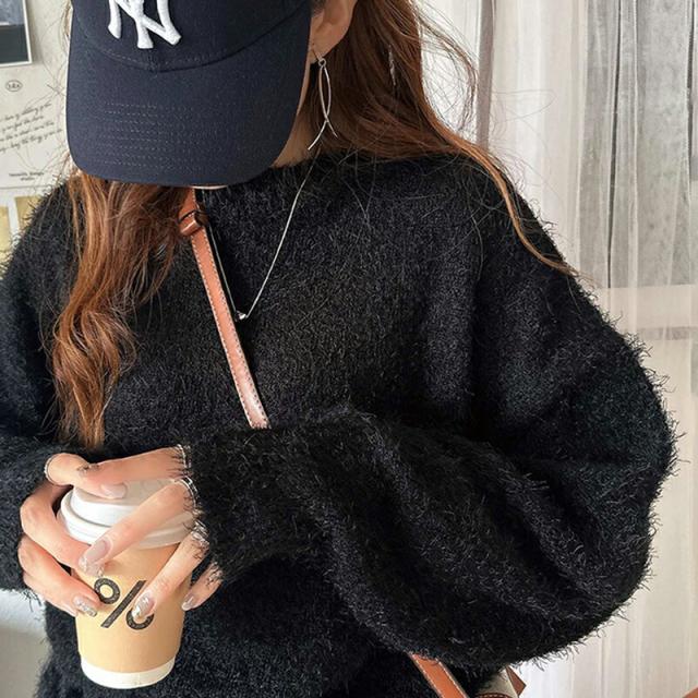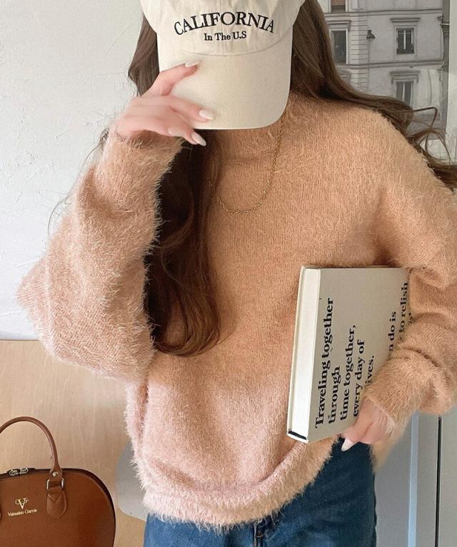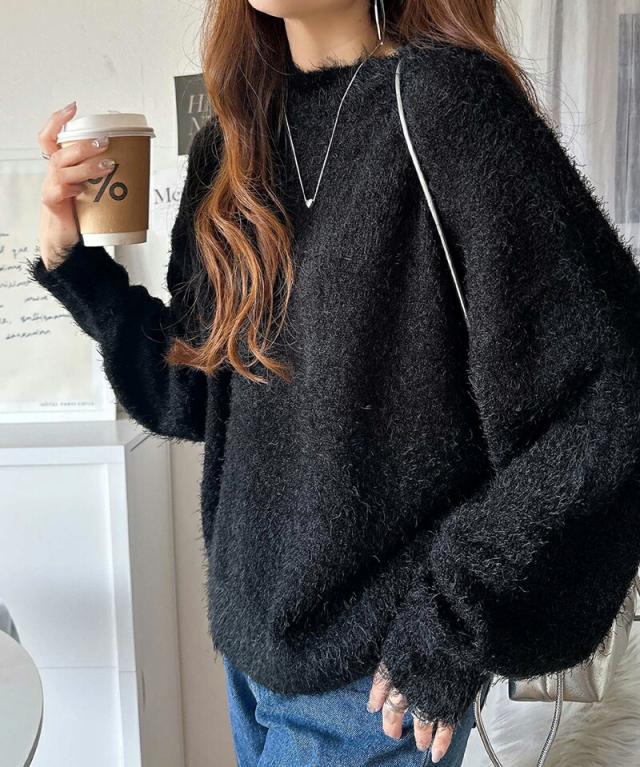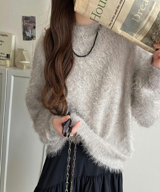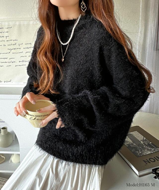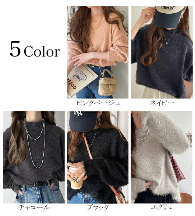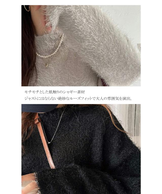 クラシカルエルフ秋新作 トップス ニット レディース もちもち シャギー 素材 モックネック プルオーバー ゆるっと オーバーサイズ 体型カバー レイヤードコーデ 暖か やわらか 大きいサイズ 2024aw ce1050232
