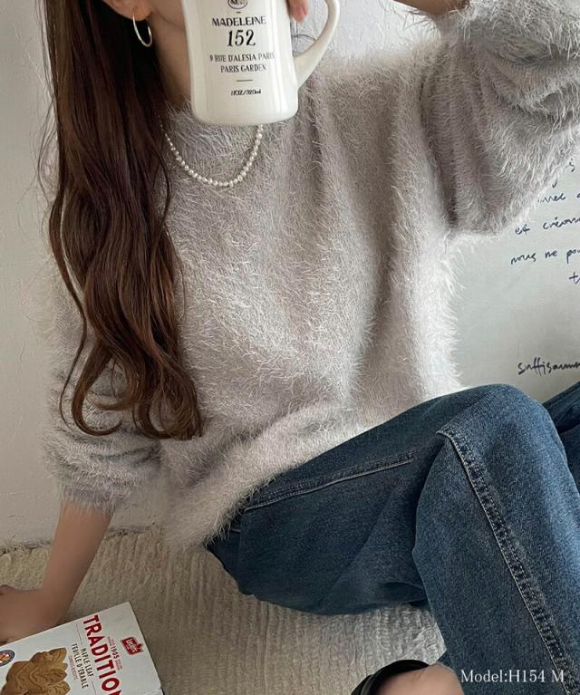 ふんわりと柔らかなシャギー素材が特徴で、肌触りがよく、着心地抜群。