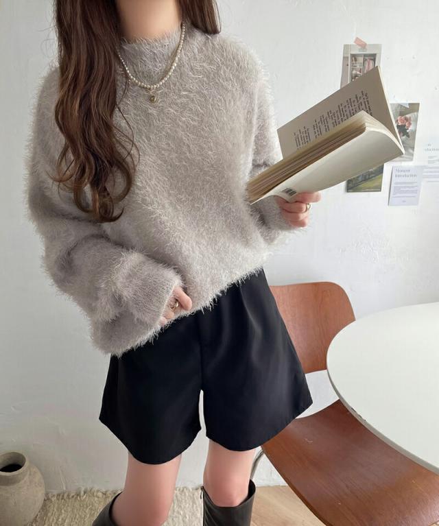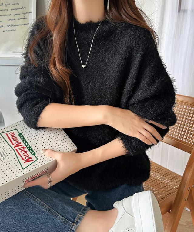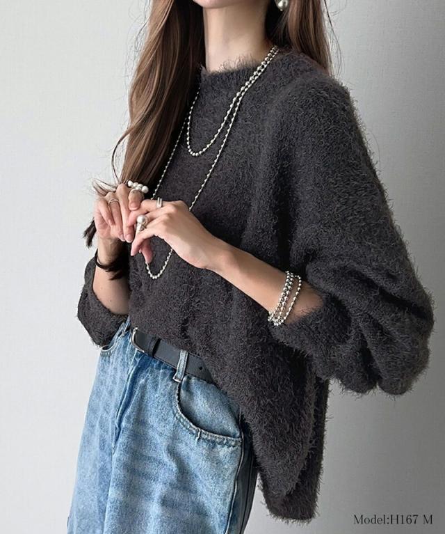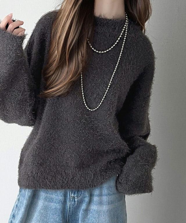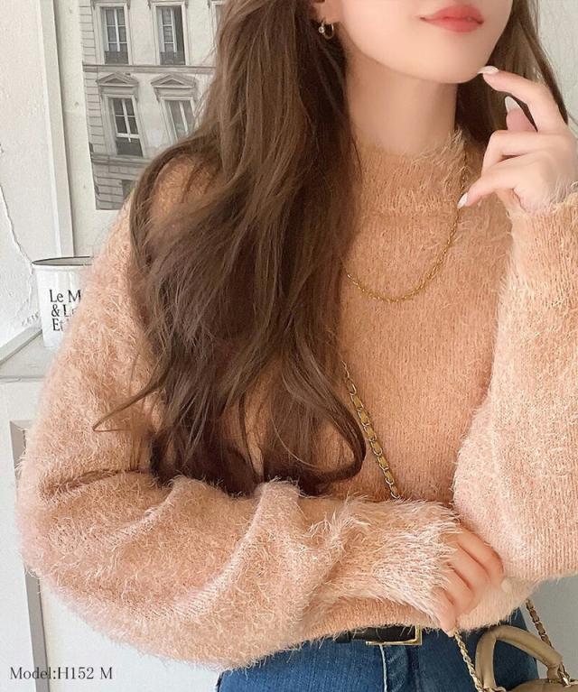 ★大人の極上シンプルスタイル。もちもちシャギーモックネックプルオーバーニット★
