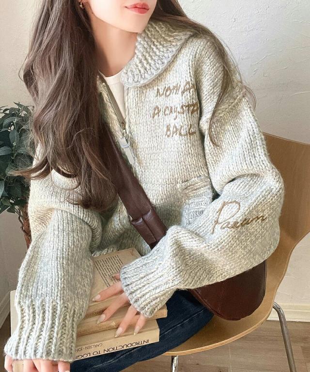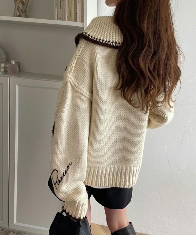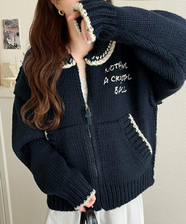 クラシカルエルフ冬新作 java ジャバコラボ アウター ジャケット レディース ロービング カウチン ニット ブルゾン ワンポイント ロゴ 刺繍 羽織り レイヤードコーデ ゆるっと オーバーサイズ 大きいサイズ 体型カバー 2024aw jv1260247