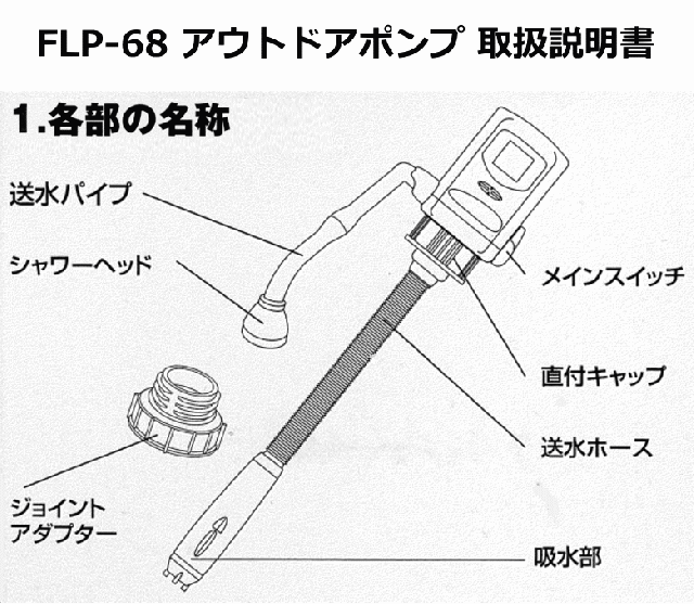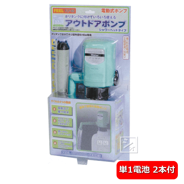グロウアップ アウトドアポンプ 電動式ポンプ シャワーヘッドタイプ FLP-68 ポリタンク出水口ネジ部外径50・65mm専用 Panasonic 単一アルカリ乾電池 2本付