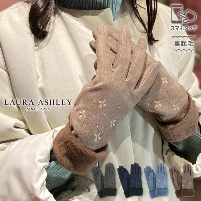 手袋 レディース ブランド 暖かい 自転車 スマホ対応 防寒 かわいい 可愛い おしゃれ 秋冬 スマホ カジュアル LAURA ASHLEY ローラアシュレイ ムートン きらきら