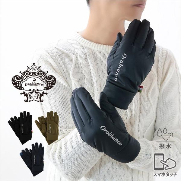 手袋 メンズ 撥水 滑り止め ストレッチ かっこいい 暖かい 自転車 おしゃれ 防寒 スマホ対応 秋冬 orobianco オロビアンコ シンプル カジュアル ブランド