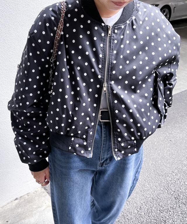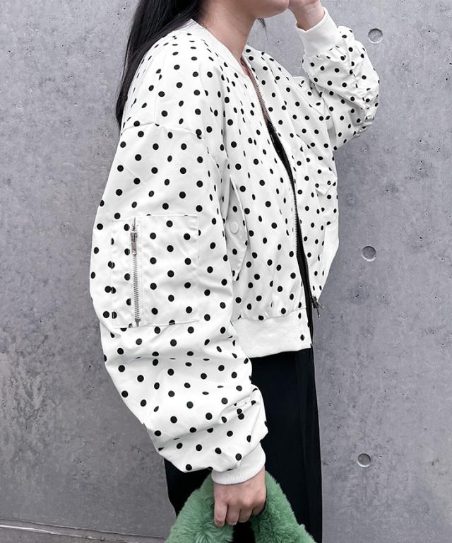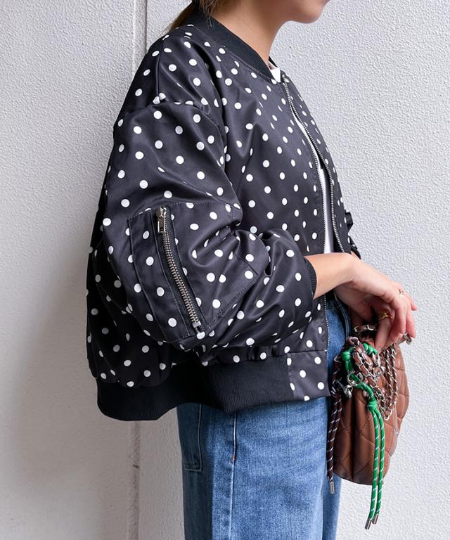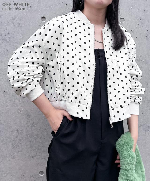 MA-1 前開き ライトジャケット ライトブルゾン 薄め 冷え対策 冷房対策 保温 裏地 裏地あり ポケットあり ポケット付き ボリューム ファスナー チャック ジッパー ジップ フラップ付き コンパクト 水玉模様 総柄 柄物 定番 流行 トレンド 流行り ガーリー ストリート 韓国 お出かけ デート レジャー アウトドア ダンス k-pop ライブ コンサート 参戦服 オフィス OL 大人 ワンマイルウェア ショッピング 買い物 野外 街着 普段着 普段使い 高校生 大学生 プレゼント ギフト 贈り物 誕生日 誕プレ デイリー 女子会 忘年会 新年会 イベント ギャザースリーブ ボリュームスリーブ ボリューム袖 旅行 UVケア UV対策 紫外線対策 軽量 軽い