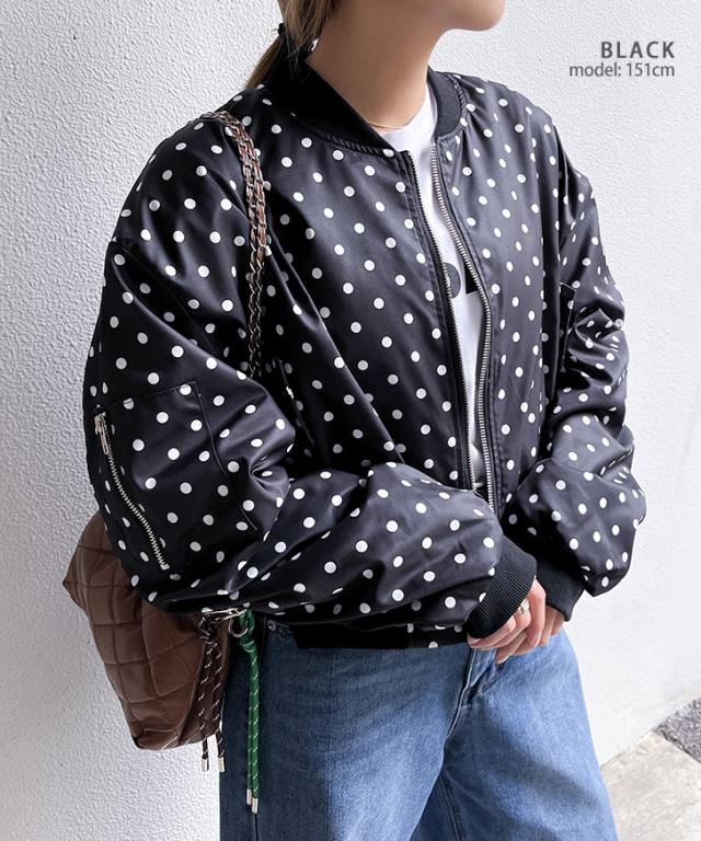新作 ブルゾン レディース アウター 秋 冬 秋冬 春 薄手 ドット柄 ジャンバー MA-1 暖かい あったか 防寒 羽織り おしゃれ かわいい