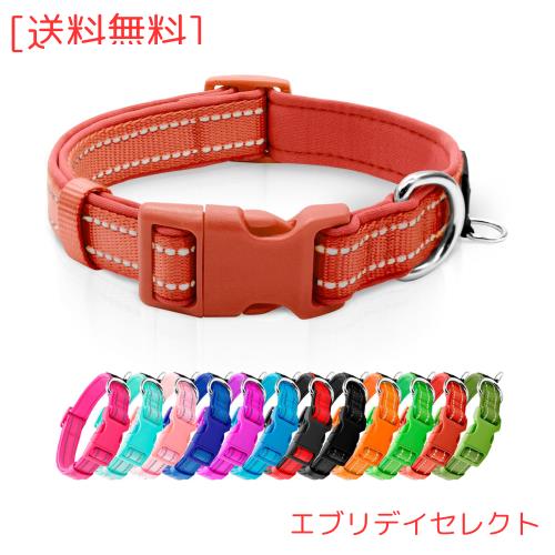 azuza 反射犬の首輪、柔らかいクロロプレンゴム充填ペット首輪、IDマークリング付き、調節可能、子犬と子犬、さび赤色、XS