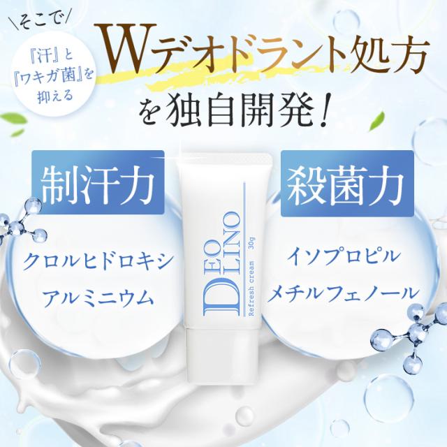 【公式正規品はこちらのみ】 DEOLINO(デオリノ) 薬用デオドラントクリーム 制汗クリーム 臭いケア 無臭 ワキガ わきが におい 匂い 臭い 体臭 脇汗 汗 制汗剤 制汗 クリーム 30g 薬用 医薬部外品 送料無料