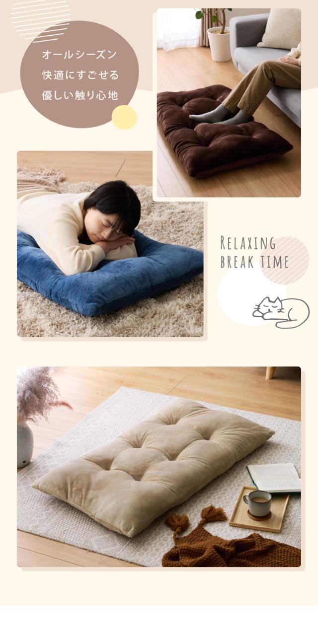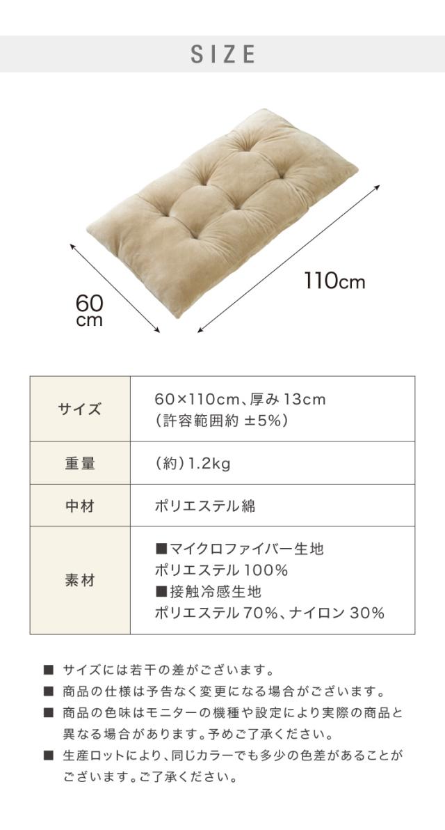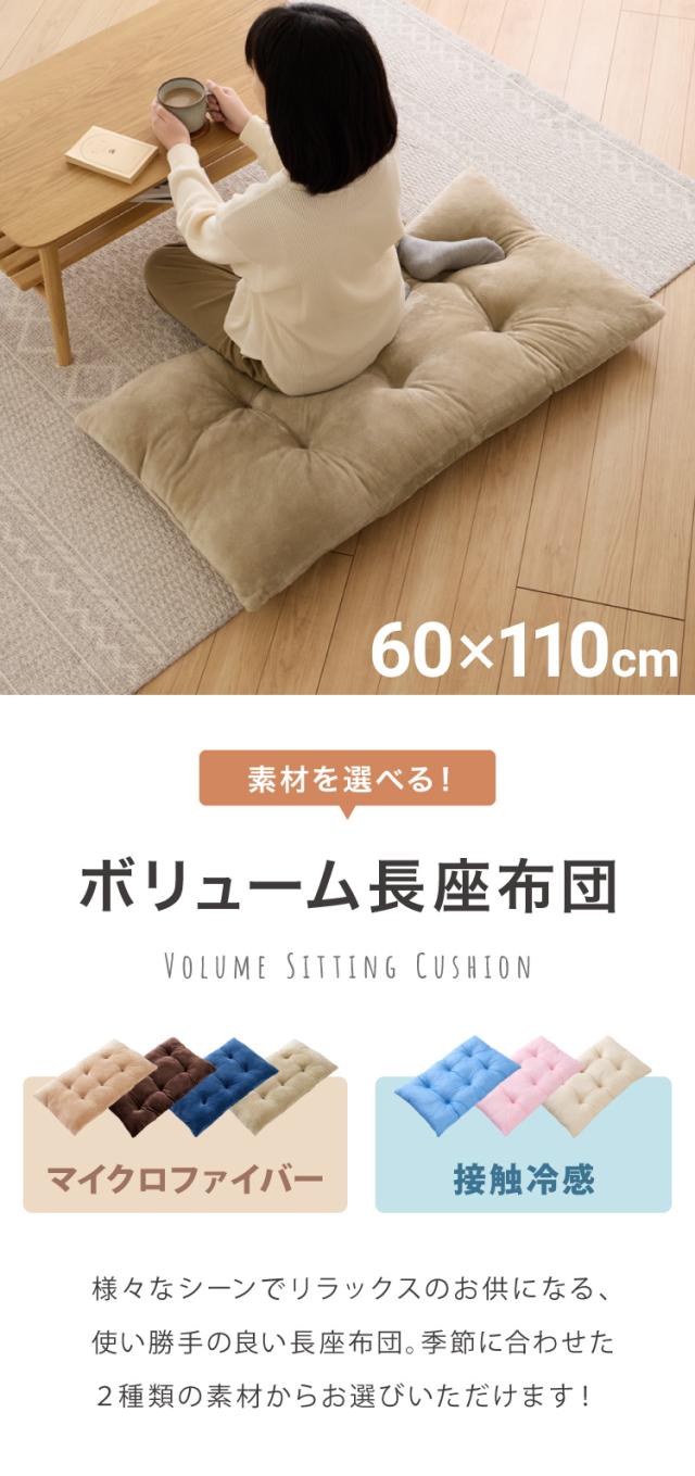 長座布団 おしゃれ 座布団 60×110 マイクロファイバー 接触冷感 ロング 軽量 ベージュ ブラウン ネイビー カフェオレ ブルー ピンク シンプル 無地 ナチュラル クッション マット【送料無料】