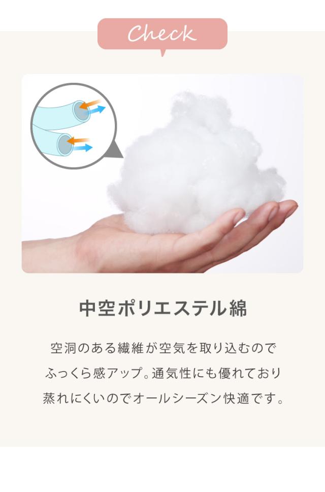 ・中空ポリエステル綿たっぷり1.2kgでふっくらとした使い心地です。