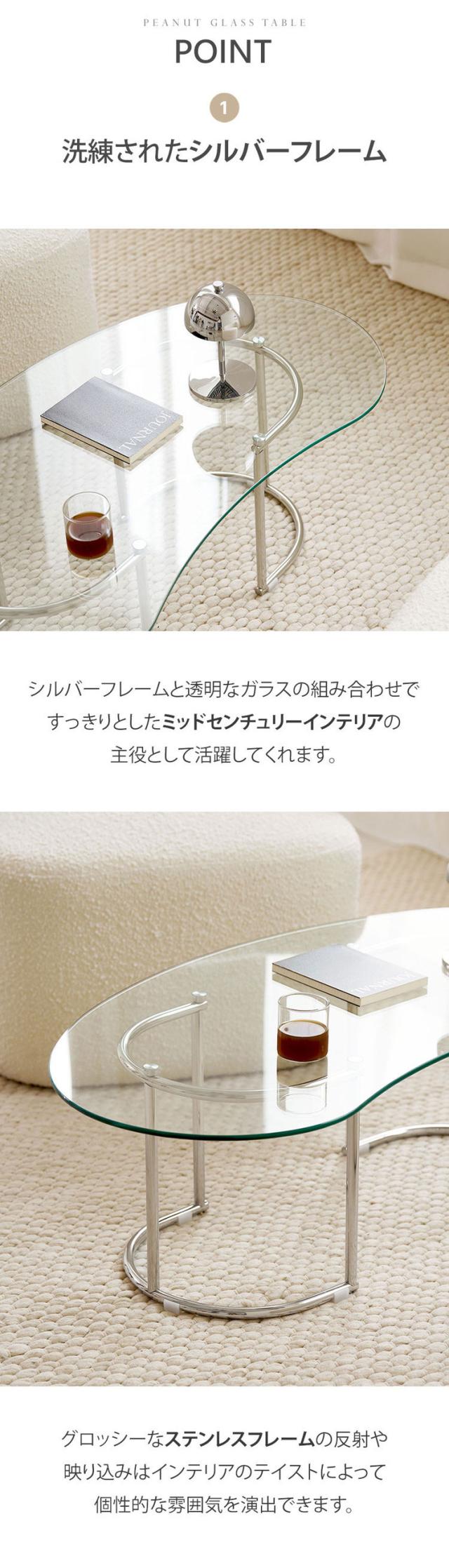 シルバーフレームと透明なガラスの組み合わせですっきりとしたミッドセンチュリーインテリアとしてお部屋を明るくします。