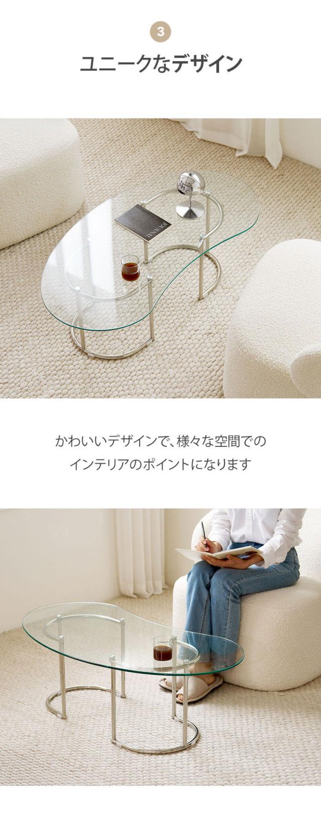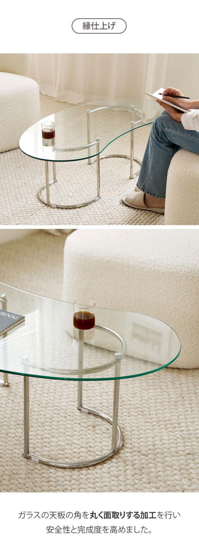 【roomnhome×リコメン堂】ガラステーブル 幅100cm センターテーブル ビーンズ型 韓国インテリア ローテーブル リビングテーブル ミッドセンチュリー カフェテーブル コーヒーテーブル 応接テーブル(代引不可)【送料無料】