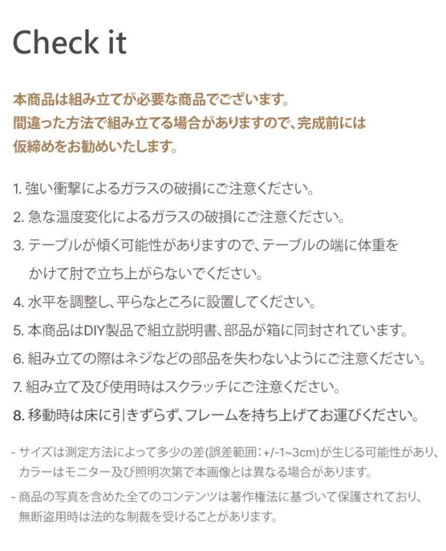 ガラスには強化ガラス、そして8mmという極厚に加え、熱処理を施すことで傷つきにくく、堅牢なガラスフレームとなっております。