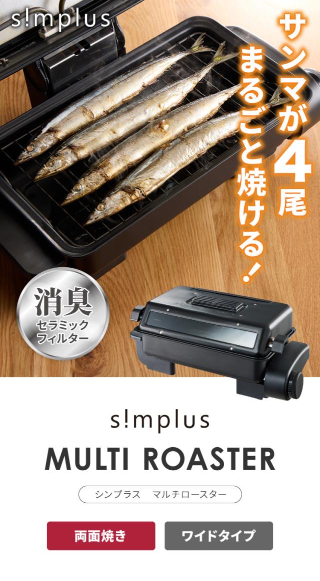 simplus マルチロースター フィッシュロースター 両面焼き ワイド 消臭フィルター Wヒーター フッ素加工 魚焼き機 SP-FRS01 グリル 【メーカー保証1年】