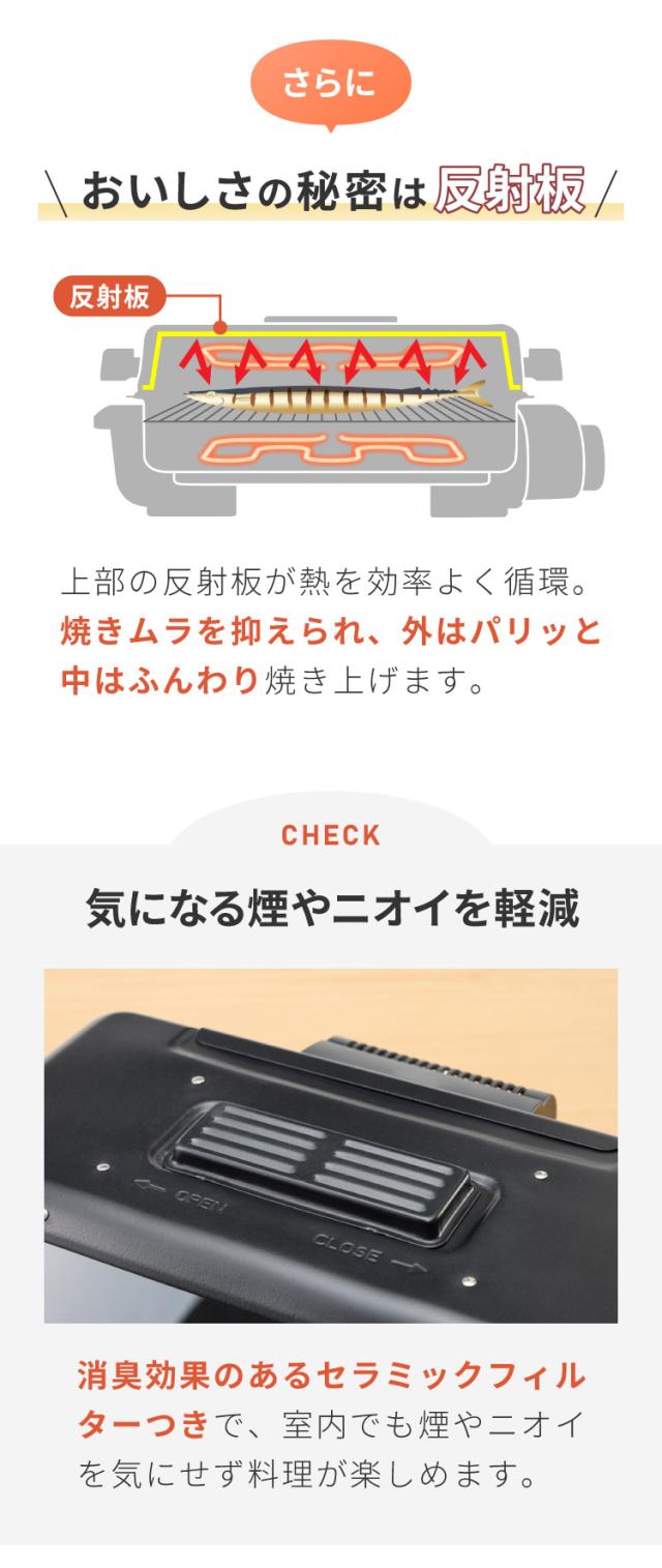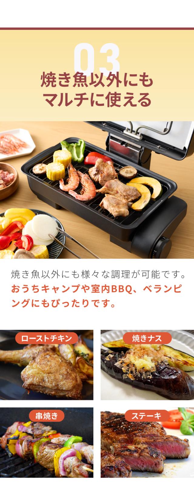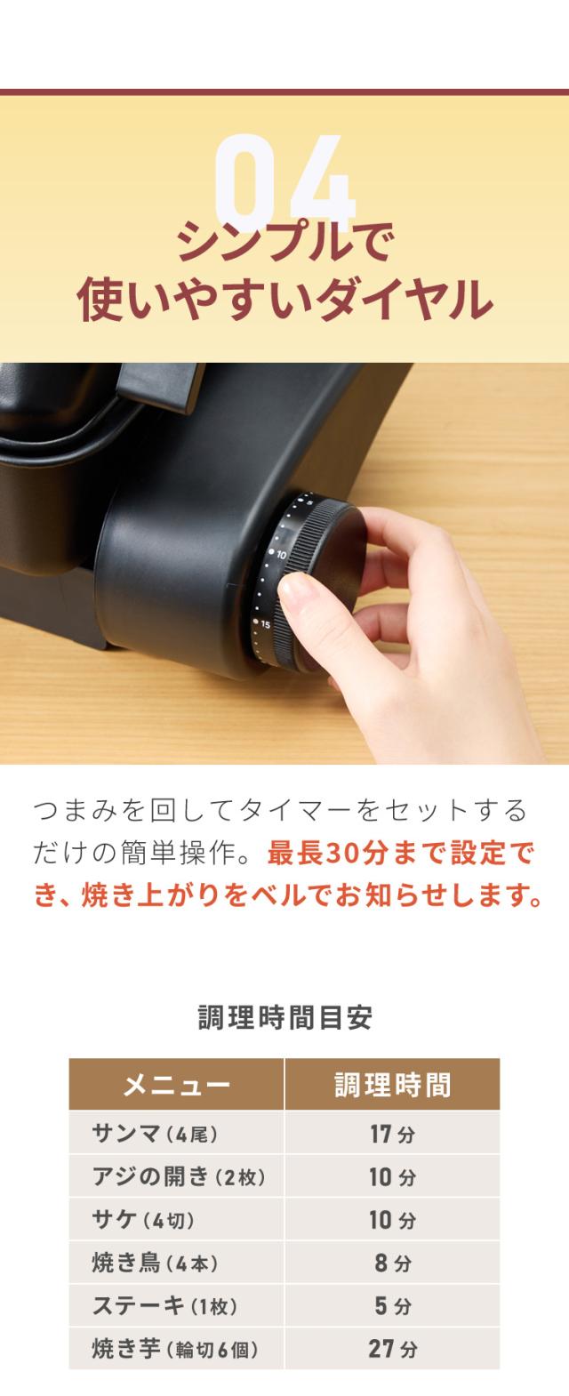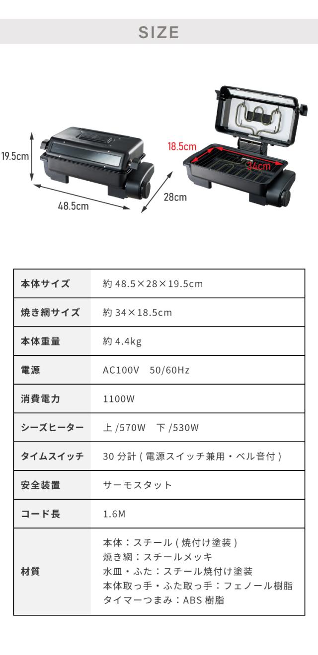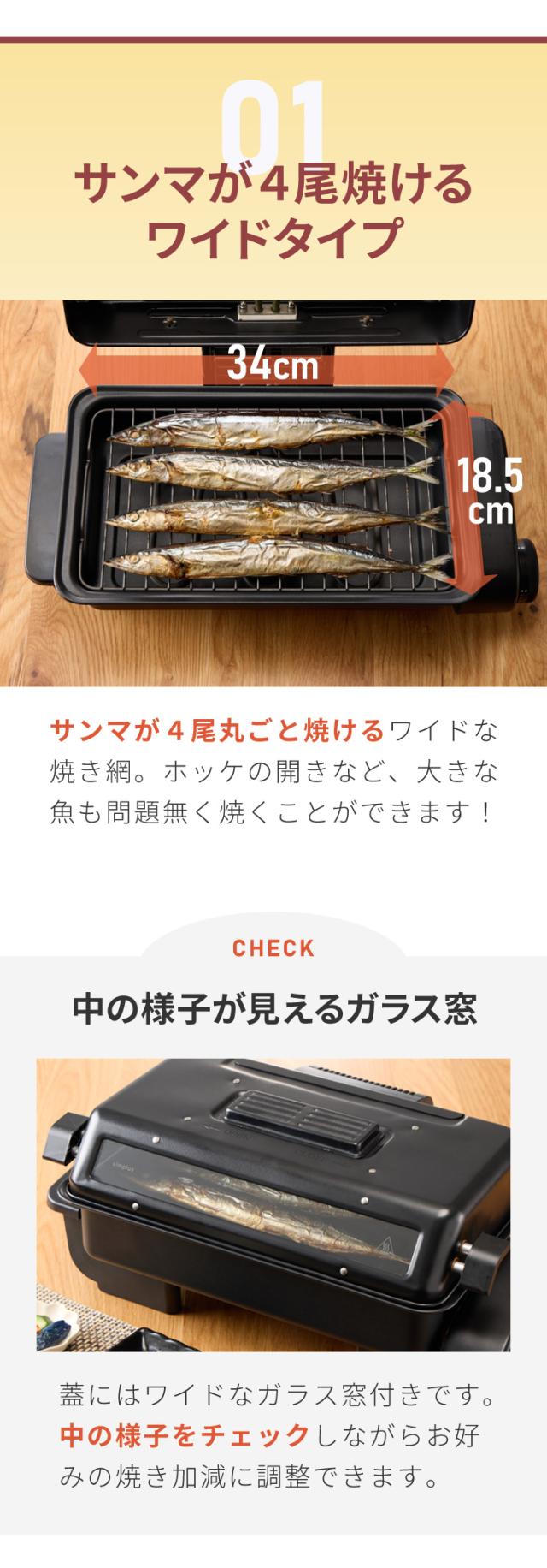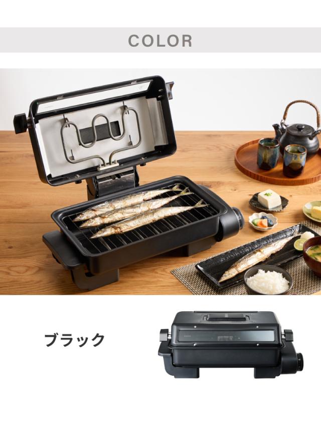 室内BBQ 手入れ簡単 ワイドガラス窓 タイマー付き両面焼きロースター 丸ごと焼ける 網焼き ホット 卓上BBQ フィッシュ マルチ さんま 焼き鳥 焼きナス 黒 ホットグリル 新生活 トースト 焼き芋 もち 反射板 お手入れ 分解 水洗い