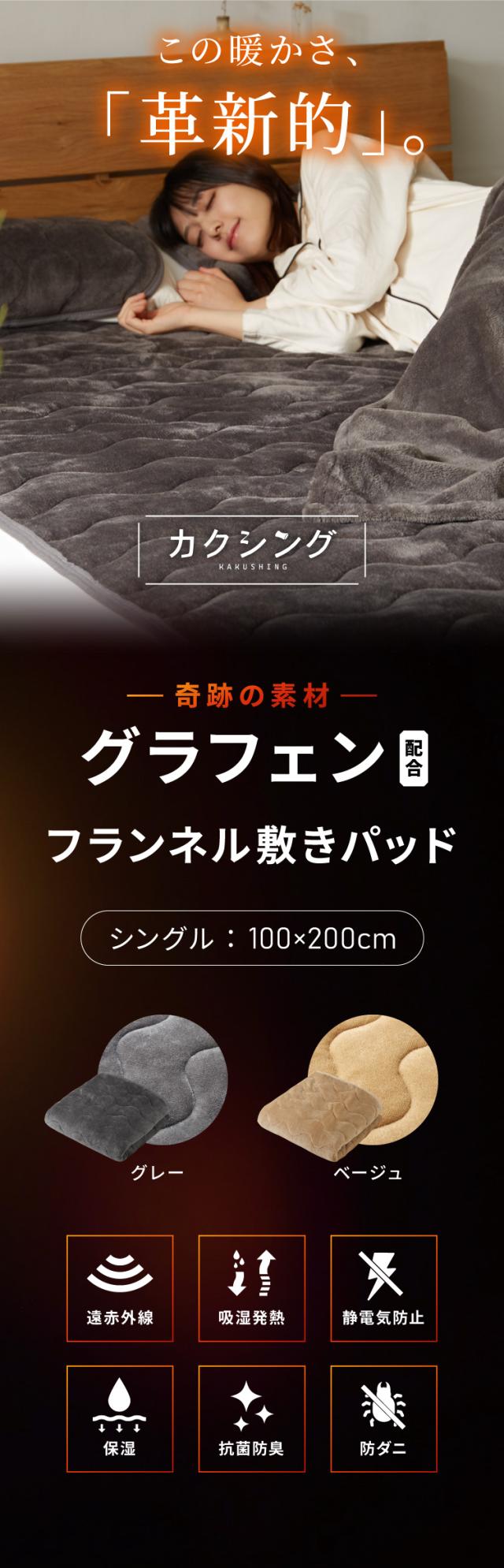 カクシング グラフェン敷きパッド シングル フランネル 遠赤外線 吸湿発熱 静電気防止 保湿 抗菌防臭 防ダニ 洗える グラフェン おしゃれ とろける 冬 あったか フランネル敷きパッド KAKUSHING【送料無料】