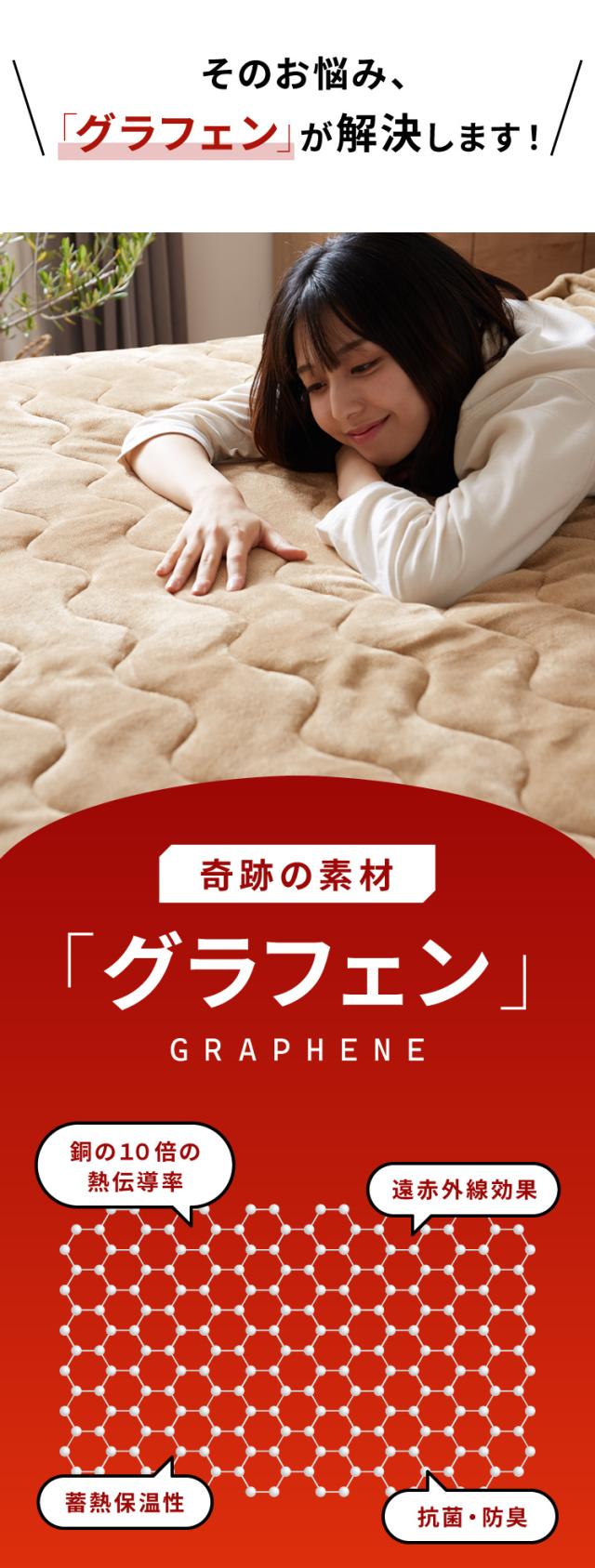 グラフェン素材、炭素素材、グラフェンフランネル、敷パッド、ベッドパッド、除電、保温、保湿機能、洗濯可能、丸洗い、とろける生地、グレー、ベージュ、かわいい、ふわふわ