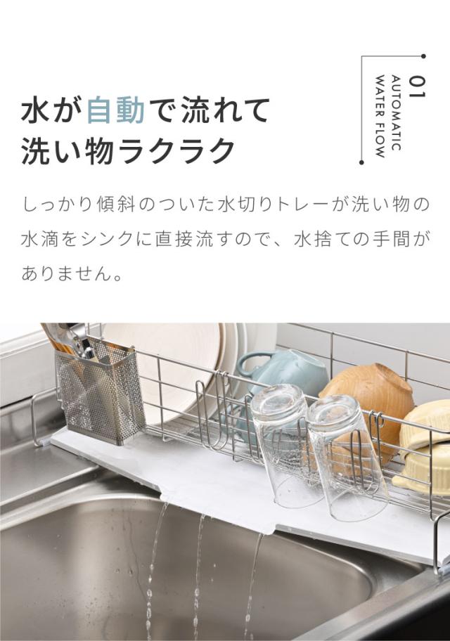 下村企販 日本製 フッ素加工トレーのスリム水切り DX 箸立て/コップ立て付き シンクサイド 深型 燕三条 ステンレス製 水切りラック 幅21.5×奥行58cm 水切りカゴ 水切りかご スリム 大容量【送料無料】