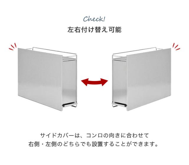 ■サイドカバーはコンロの向きにより、左右付け替え可能です。