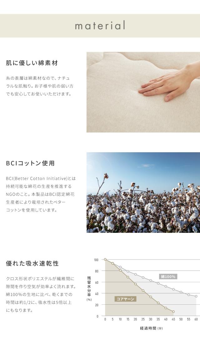 with、core、ウィズコア、肌掛け布団、肌布団、掛け布団、掛布団、ふとん、コアヤーン糸、コアヤーン繊維、複合繊維、吸水、速乾、乾きやすい、再生ポリエステル、エコ、SDGs