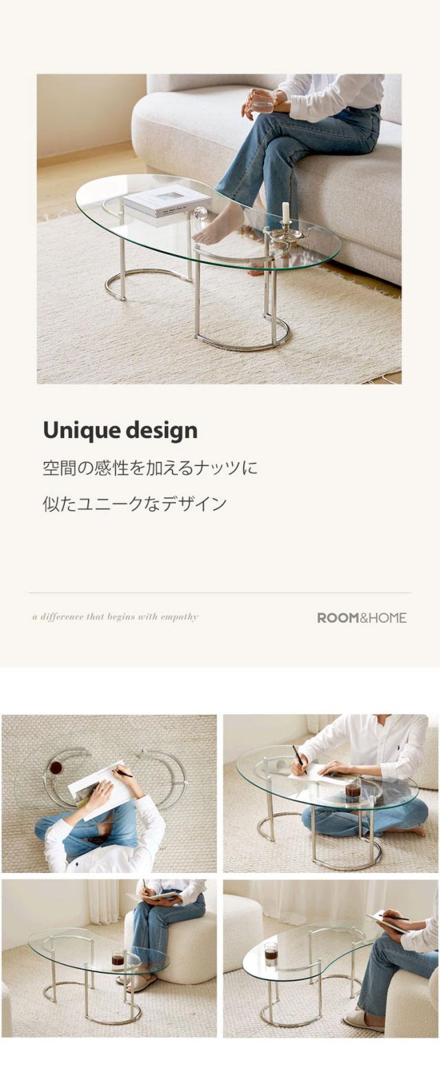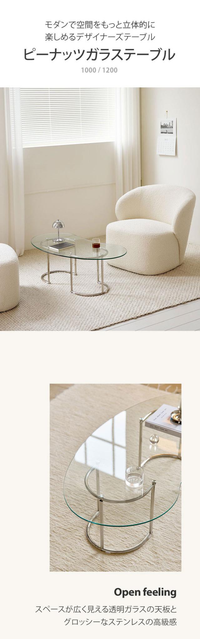 【roomnhome×リコメン堂】ガラステーブル 幅120cm センターテーブル ビーンズ型 韓国インテリア ローテーブル リビングテーブル ミッドセンチュリー カフェテーブル コーヒーテーブル おしゃれ(代引不可)【送料無料】