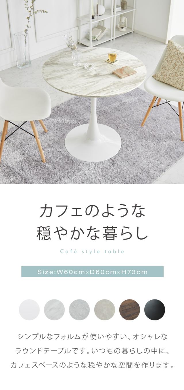 ダイニングテーブル 丸テーブル 白 幅60cm 組み立て簡単 お手入れ簡単 円形 スチール MDF ホワイト 省スペース コンパクト 2人用 3人用 おしゃれ 北欧 一人暮らし 韓国インテリア カフェテーブル 大理石色【送料無料】