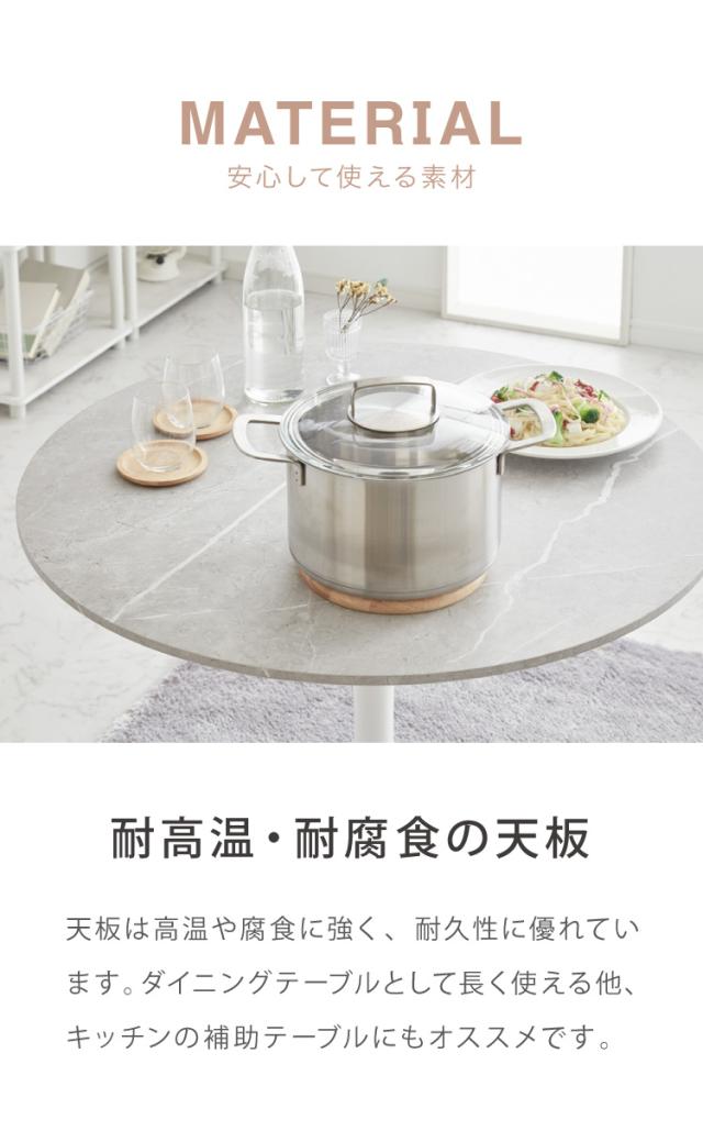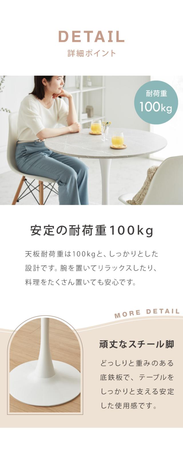 ダイニングテーブル、丸テーブル、白、幅80cm、高さ73cm、組み立て簡単、お手入れ簡単、円形、スチール、MDF、ホワイト、省スペース、コンパクト、2人用、3人用、おしゃれ、北欧、一人暮らし、韓国インテリア、カフェテーブル、韓国、韓国インテリア