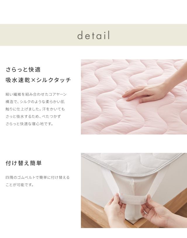 with、core、ウィズコア、敷パッド、敷きパッド、ベッドパッド、敷き布団、コアヤーン糸、コアヤーン繊維、接触冷感、持続冷感、冷感、夏、吸水、速乾、枕パッド付き
