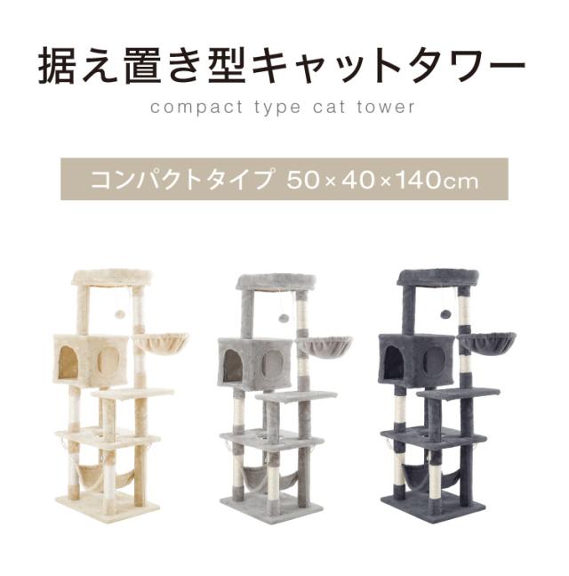 キャットタワー 据え置き スリム 40×50cm 高さ140cm 爪とぎ ハンモック 隠れ家 おしゃれ 運動不足 ストレス解消 猫用品 ペット用品 キャットハウス 猫タワー おもちゃ 省スペース コンパクト【送料無料】