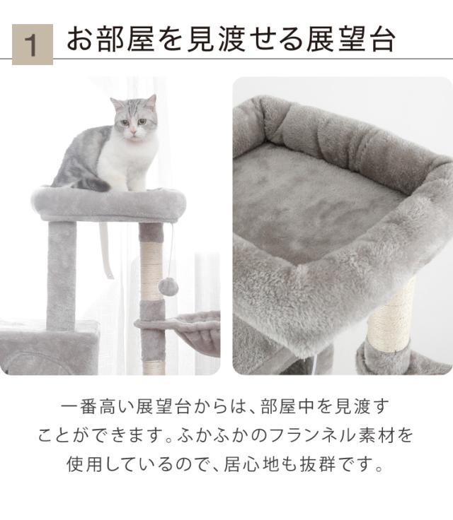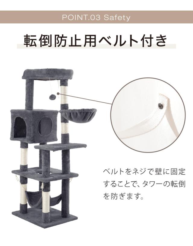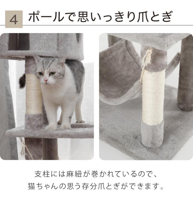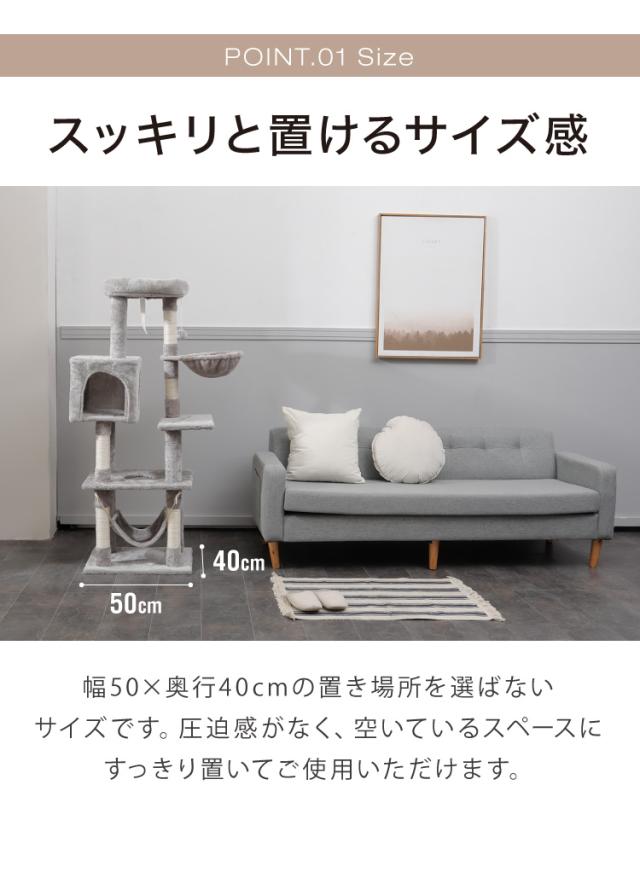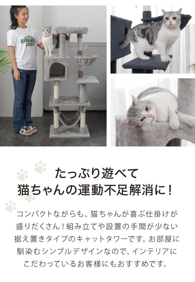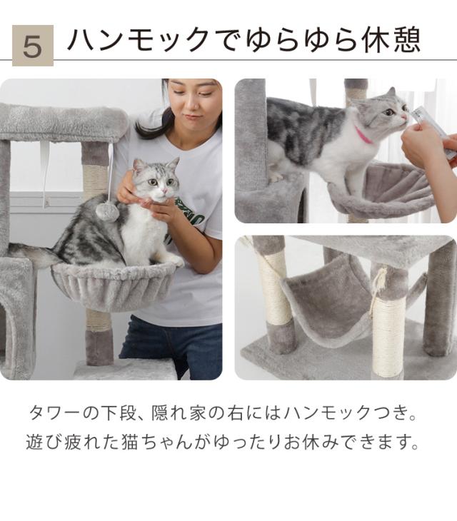キャットタワー、キャットハウス、キャットツリー、猫タワー、据え置き、ハウス、ハンモック、猫、ねこ、ネコ、爪とぎ、つめとぎ、ベッド、おもちゃ、多頭飼い、シンプル、かわいい、インテリア、ペット、ペット用品、猫用品、省スペース、置き型、低ホルムアルデヒド、エコテックス、FSC認証、頑丈、安定