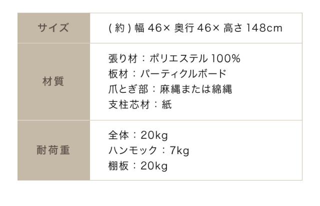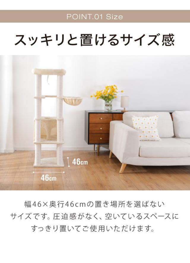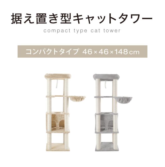キャットタワー スリム 据え置き ハンモック付き 46×46cm 高さ148cm 省スペース おしゃれ 猫用品 ペット用品 タワーb8-cattower-05b8-cattower-05【送料無料】