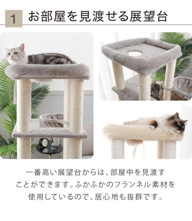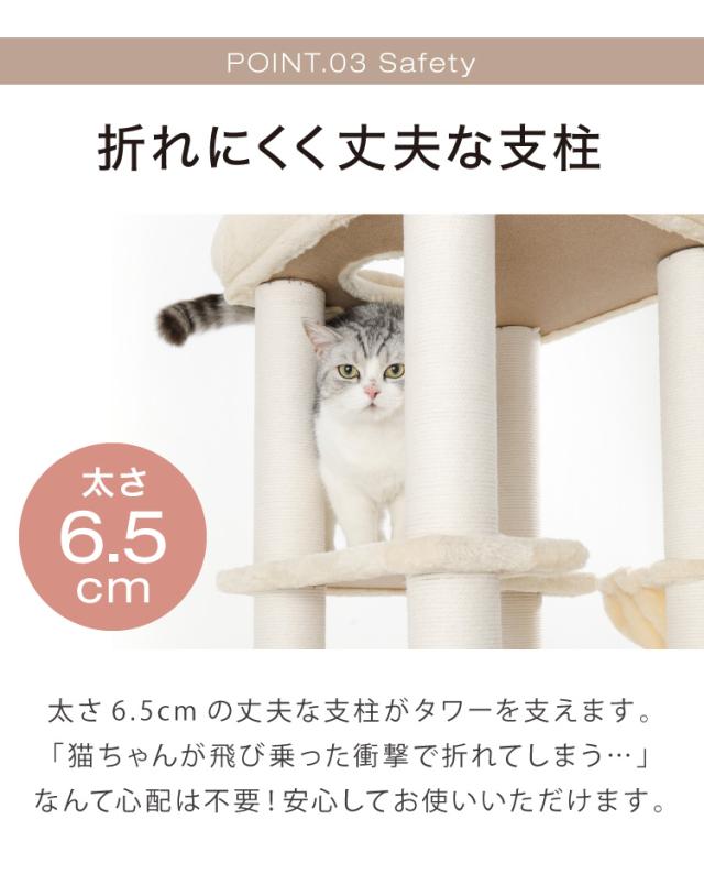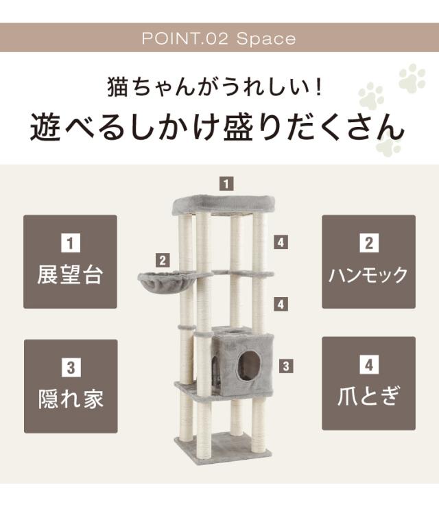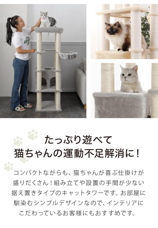 キャットタワー、キャットハウス、キャットツリー、猫タワー、据え置き、ハウス、ハンモック、猫、ねこ、ネコ、爪とぎ、つめとぎ、ベッド、おもちゃ、多頭飼い、シンプル、かわいい、インテリア、ペット、ペット用品、猫用品、省スペース、置き型、低ホルムアルデヒド、エコテックス、FSC認証、頑丈、安定