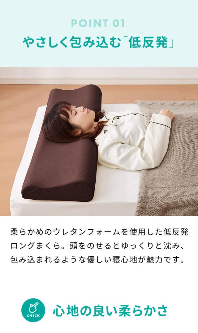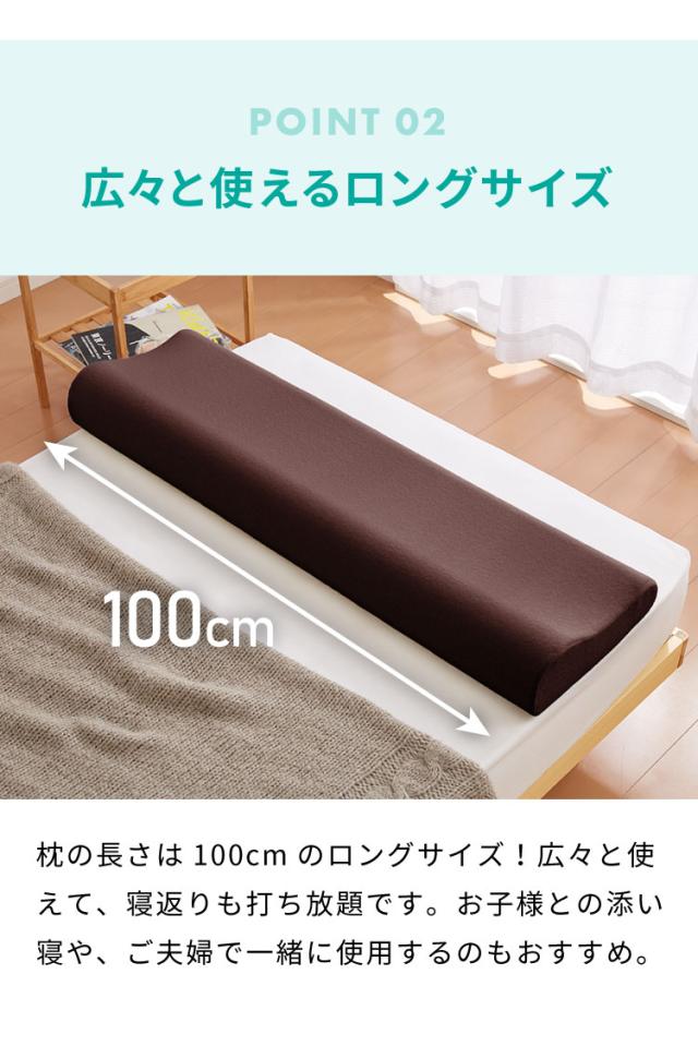 まくら 低反発 ロング 幅100cm 洗えるカバー ウレタン 80N 硬め パイル生地 アイボリー ブラウン 体圧分散 寝返り 安眠 快眠 枕