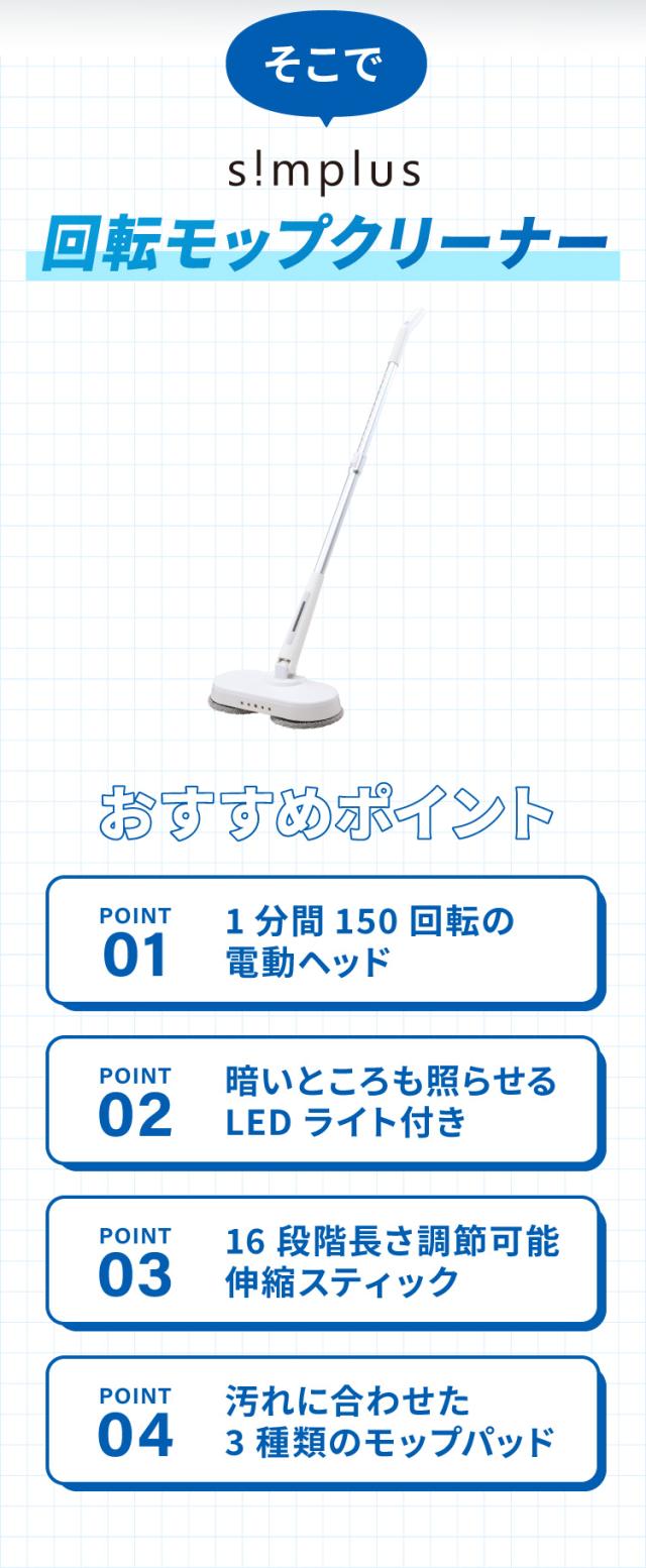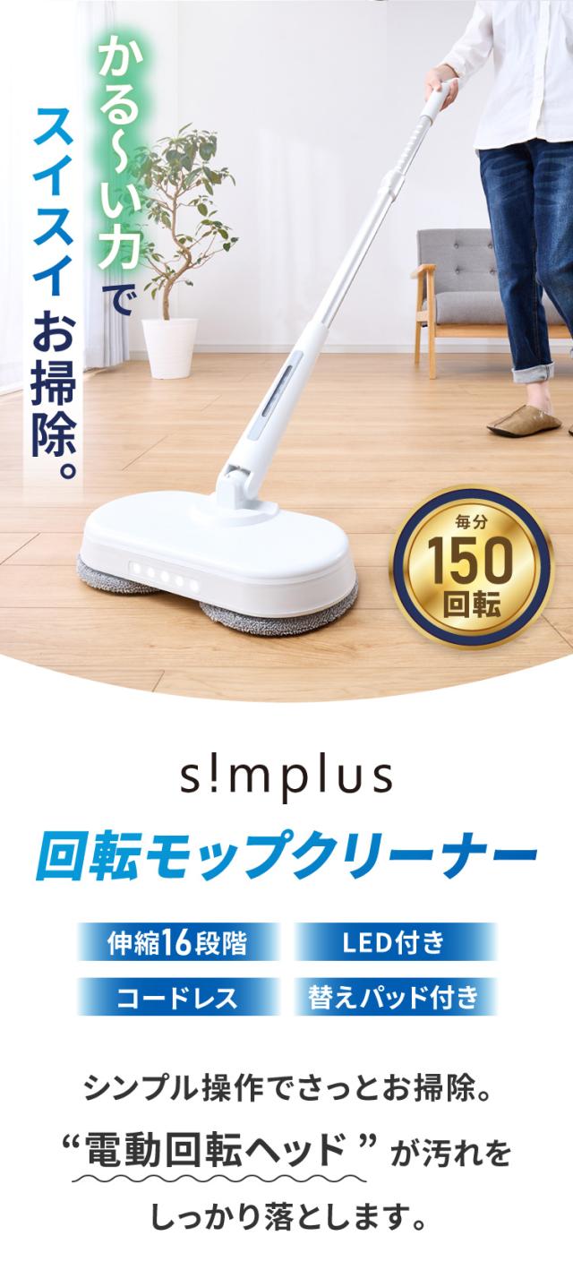 simplus 回転モップクリーナー 電動モップ 3種替えモップセット 自走式 コードレス 床拭き 玄関 網戸 SP-TRM01 【メーカー保証1年】