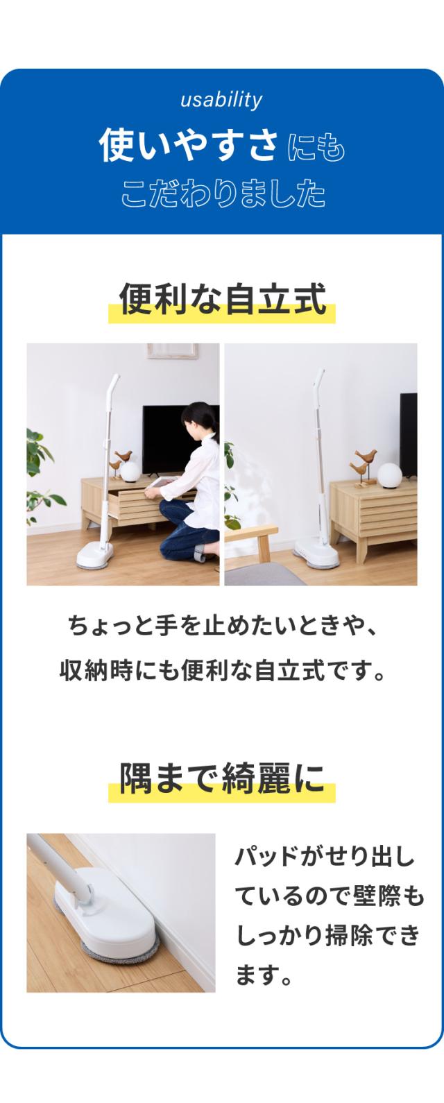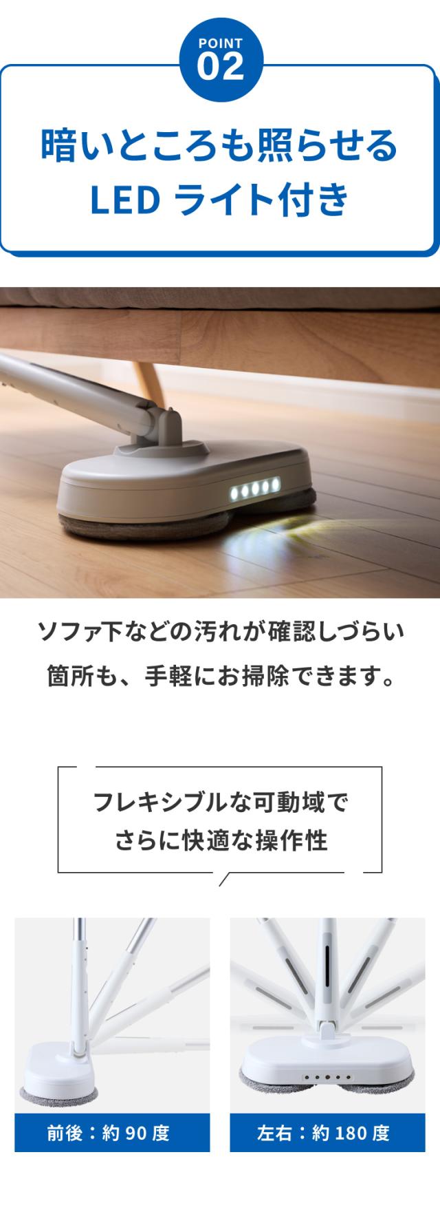 ツインモップ、水拭き、掃除、玄関、替えパット付き、高速回転、充電式、床拭き、3Way、ハンディ、雑巾がけ