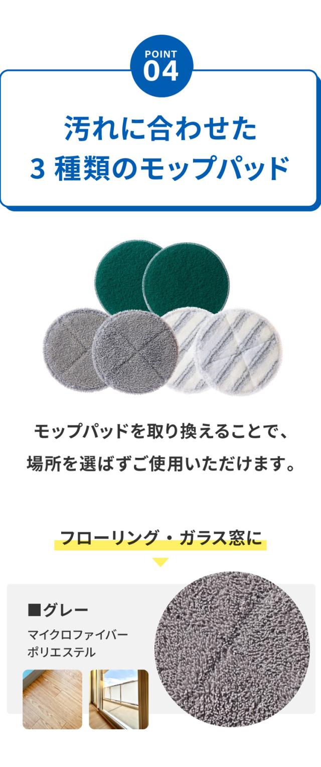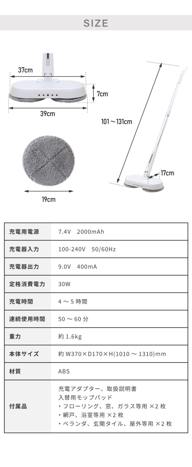 付属品:充電アダプター、取扱説明書、入替用モップパット×6枚※