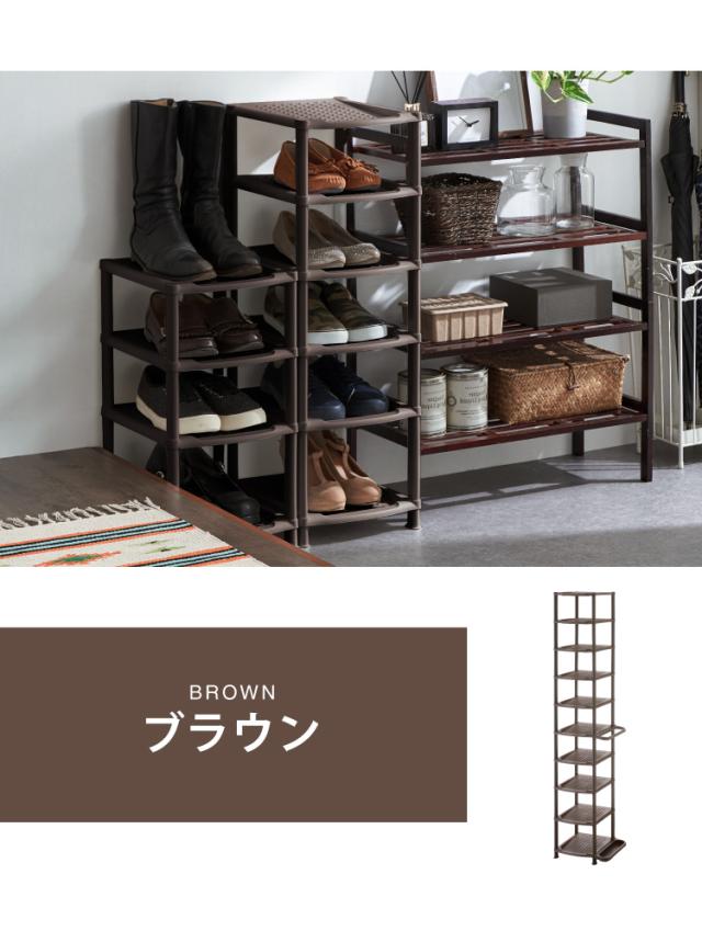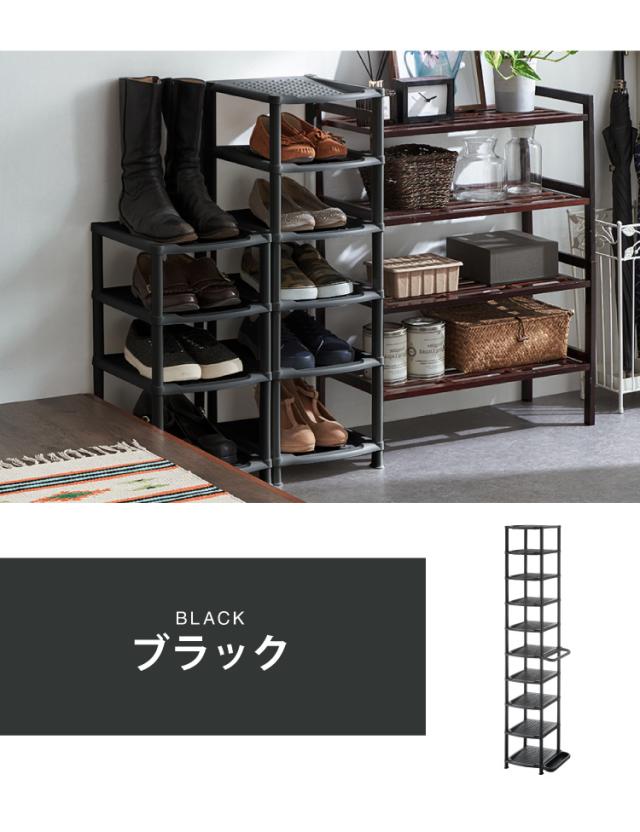 シューズラック スリム 省スペース 10段 大容量 傘立て付き シンプル ブラック ホワイト グレー ブラウン 黒 白 おしゃれ シューズボックス コンパクト 2列 薄型 玄関収納 一人暮らし【送料無料】