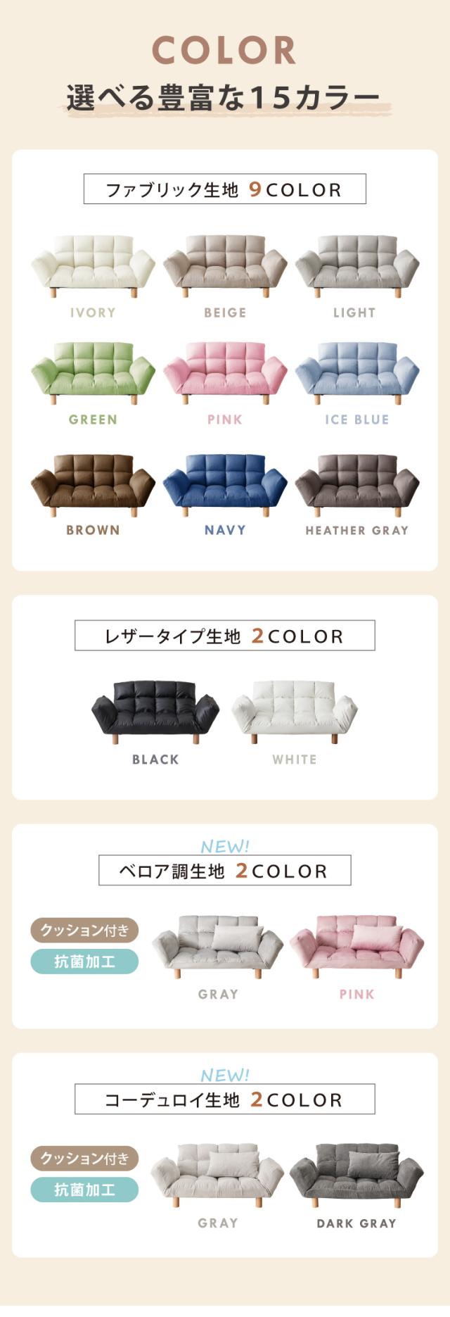 ライトグレー / ベージュ / ピンク / アイスブルー / ネイビー / ブラウン / グリーン / アイボリー / ヘザーグレー / レザーブラック / レザーホワイト / ベロアピンク / ベロアグレー / コーディロイライトグレー / コーディロイグレー