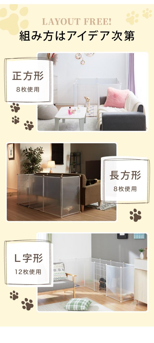 ペットフェンス 透明 半透明 クリア 置くだけ 組立簡単 50×70cm レイアウト自由 ドア有 ドア無 13枚 正方形 長方形 コンパクト【送料無料】