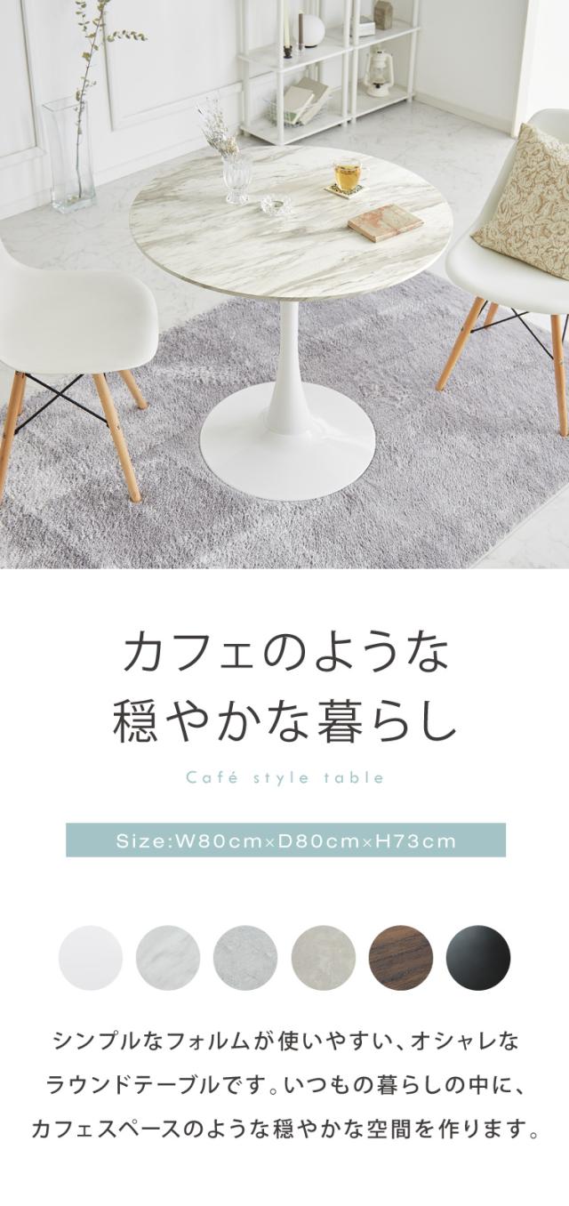 ダイニングテーブル カフェテーブル 丸テーブル 一人暮らし 白 幅80cm 北欧 お手入れ簡単 円形 スチール MDF ホワイト 省スペース 高さ73cm 組み立て簡単 円型 おしゃれ ホワイト 韓国インテリア 木製 大理石色【送料無料】