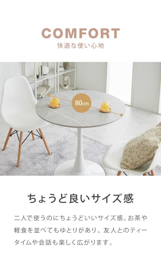 ダイニングテーブル、丸テーブル、白、幅80cm、高さ73cm、組み立て簡単、お手入れ簡単、円形、スチール、MDF、ホワイト、省スペース、コンパクト、2人用、3人用、おしゃれ、北欧、一人暮らし、カフェテーブル、韓国、韓国インテリア