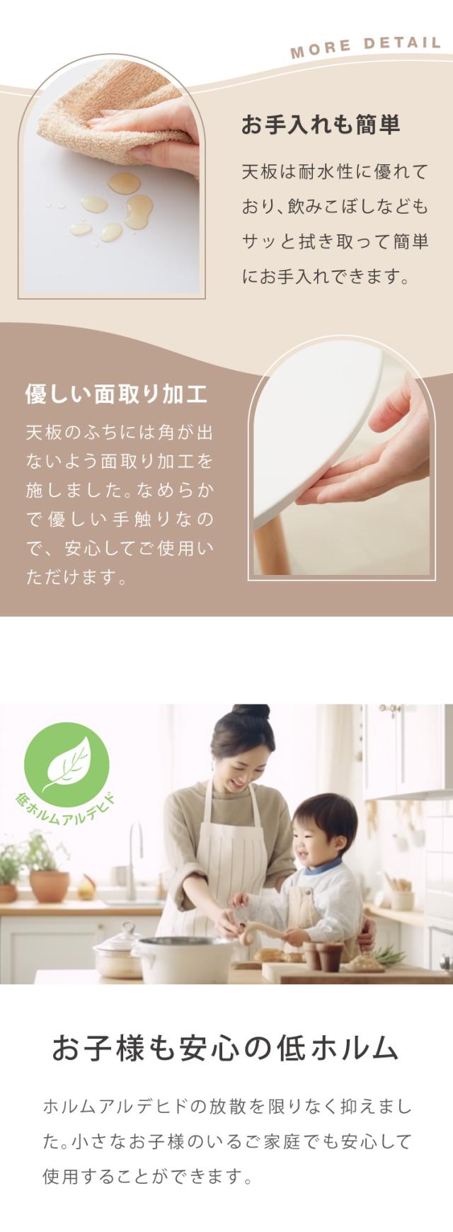 ・ホルムアルデヒド拡散抑制、面取り加工などお子様のいるご家庭も安心してお使いいただけます