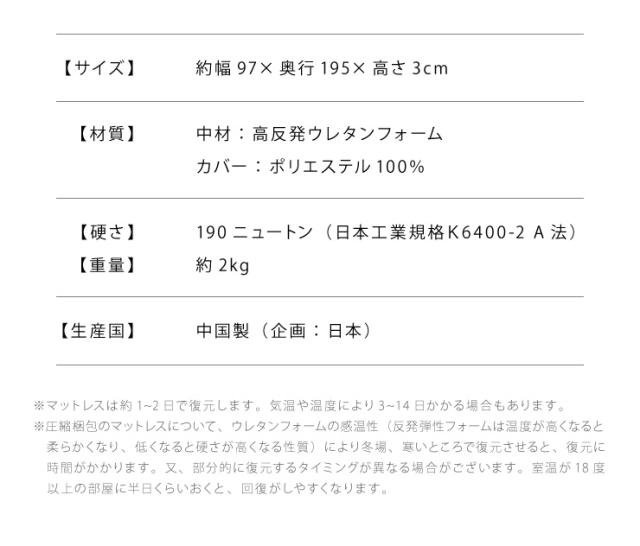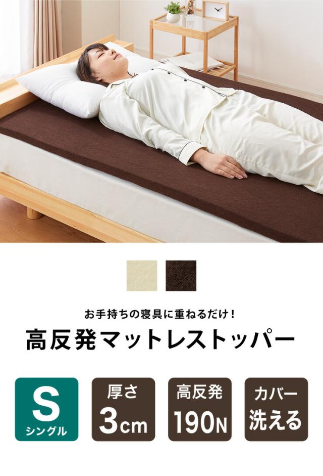 マットレストッパー 高反発 マットレス トッパー シングル 厚さ3cm フラットタイプ フラット カバー付き ヨガマット ごろ寝マット 190N 洗える ストレッチ カバー マットレスパッド オーバーレイ パイル生地 寝返り 安眠【送料無料】